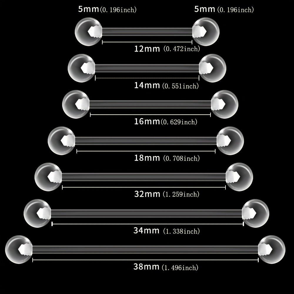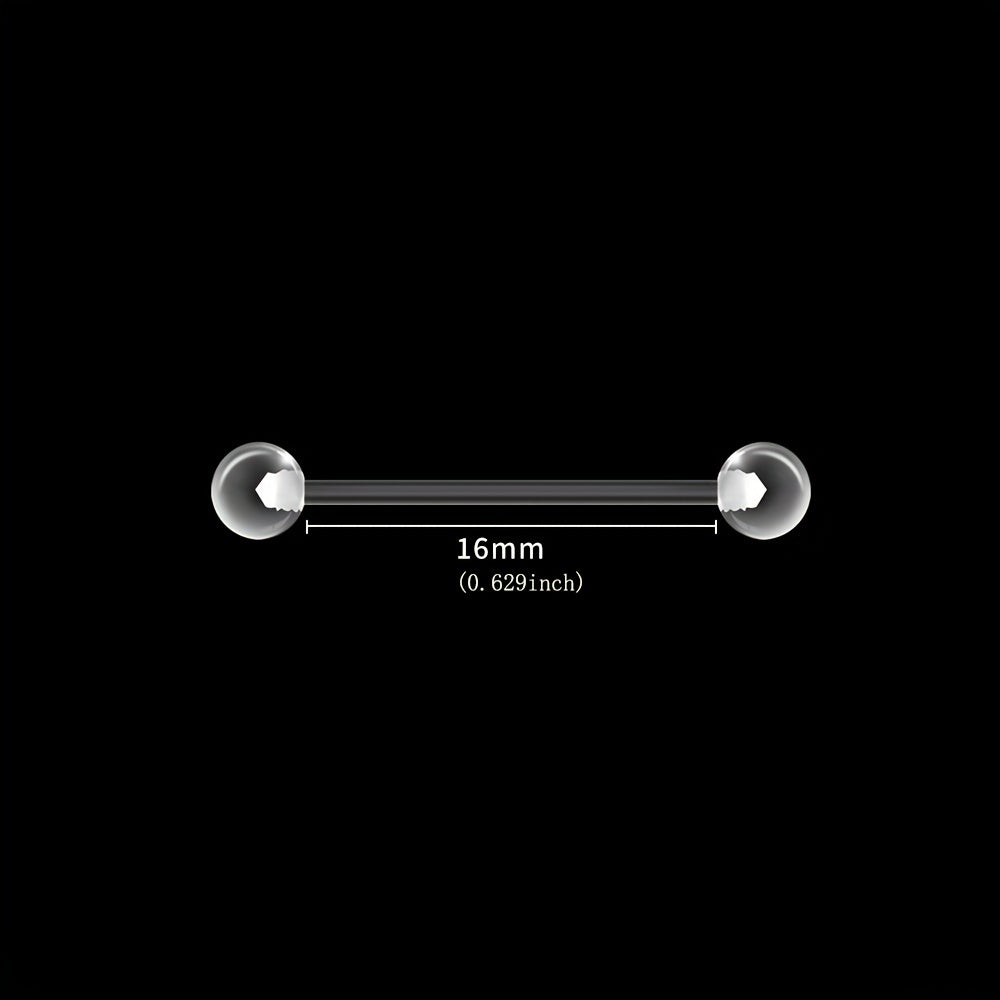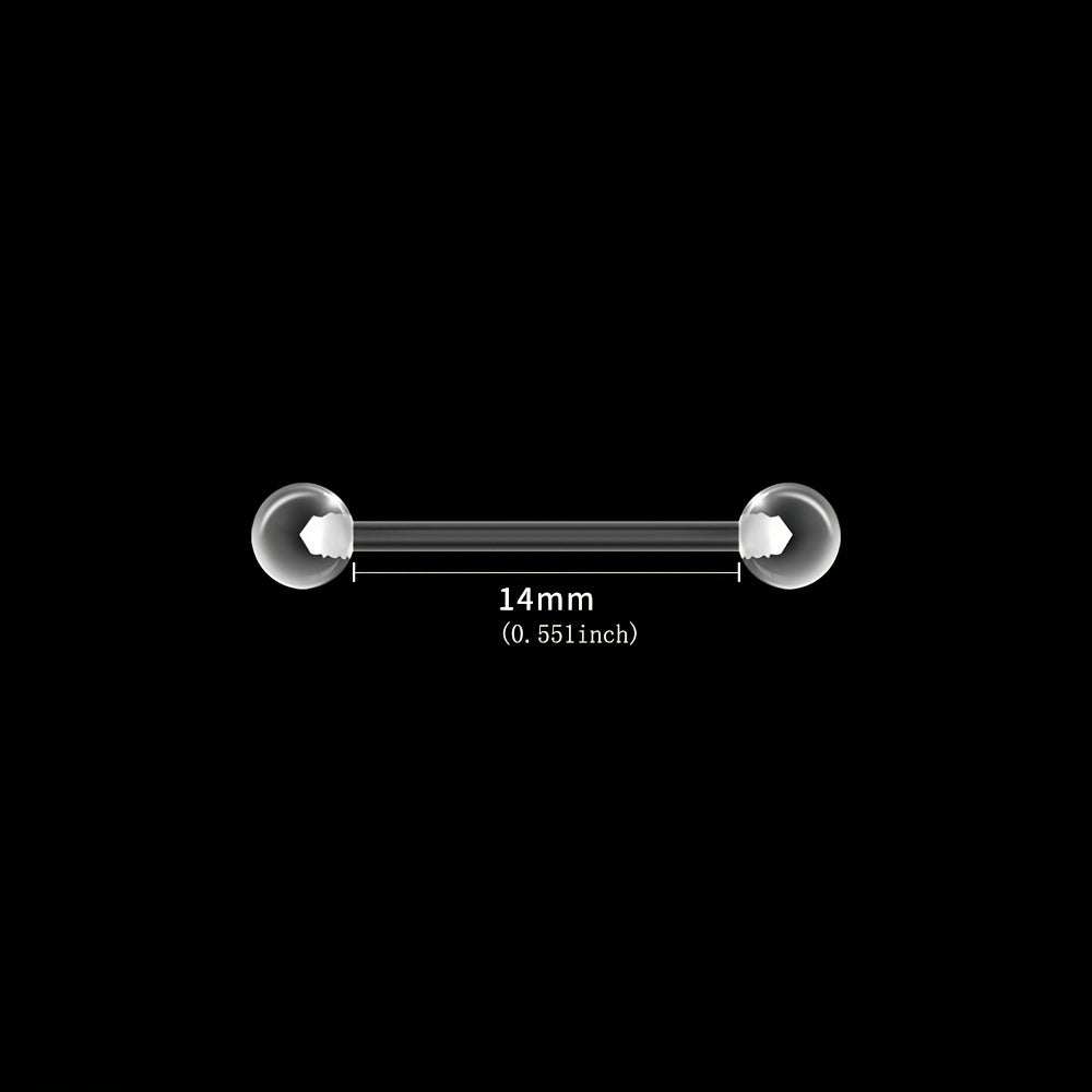 Keep your piercings discreet with these clear acrylic retainers. They are flexible and ideal for tongue rings. Set includes 10 pieces in 12 38mm size.