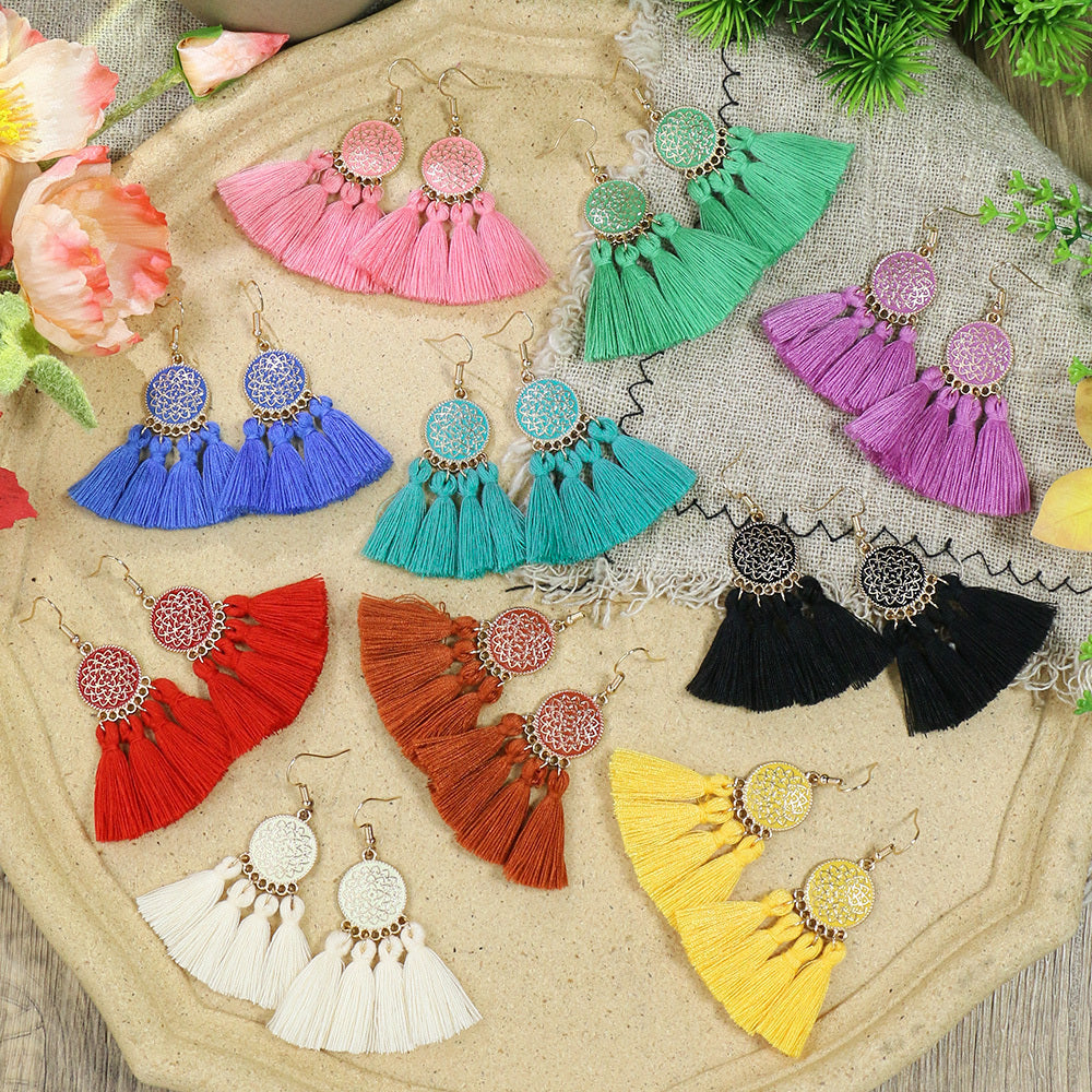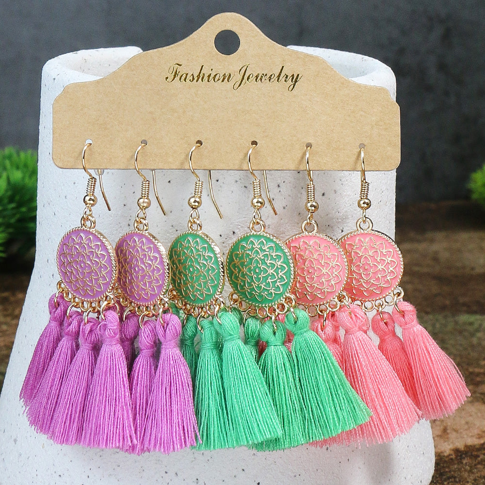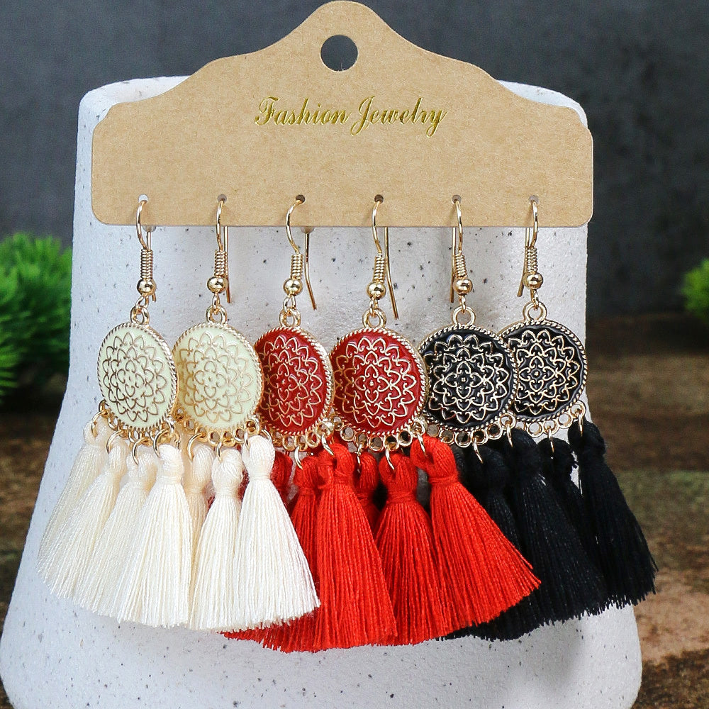 10 Pairs Polka Dot Flower Tassel Charm Earrings