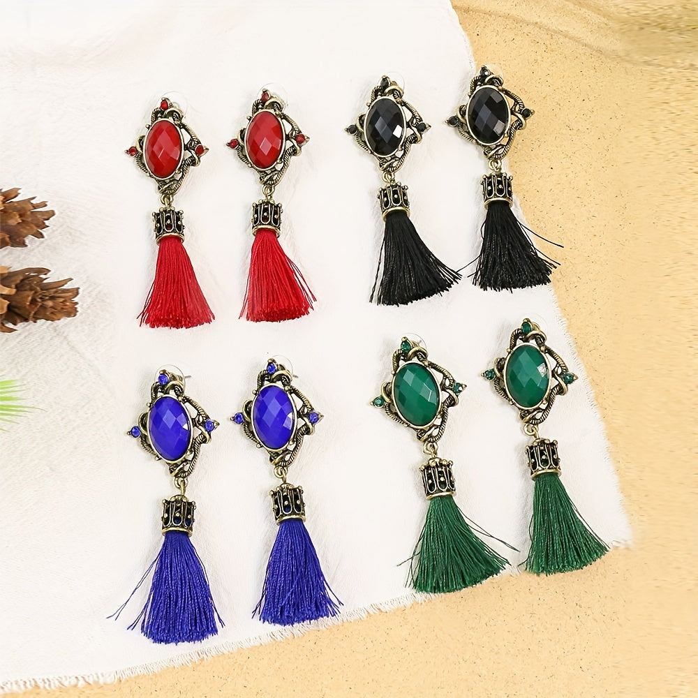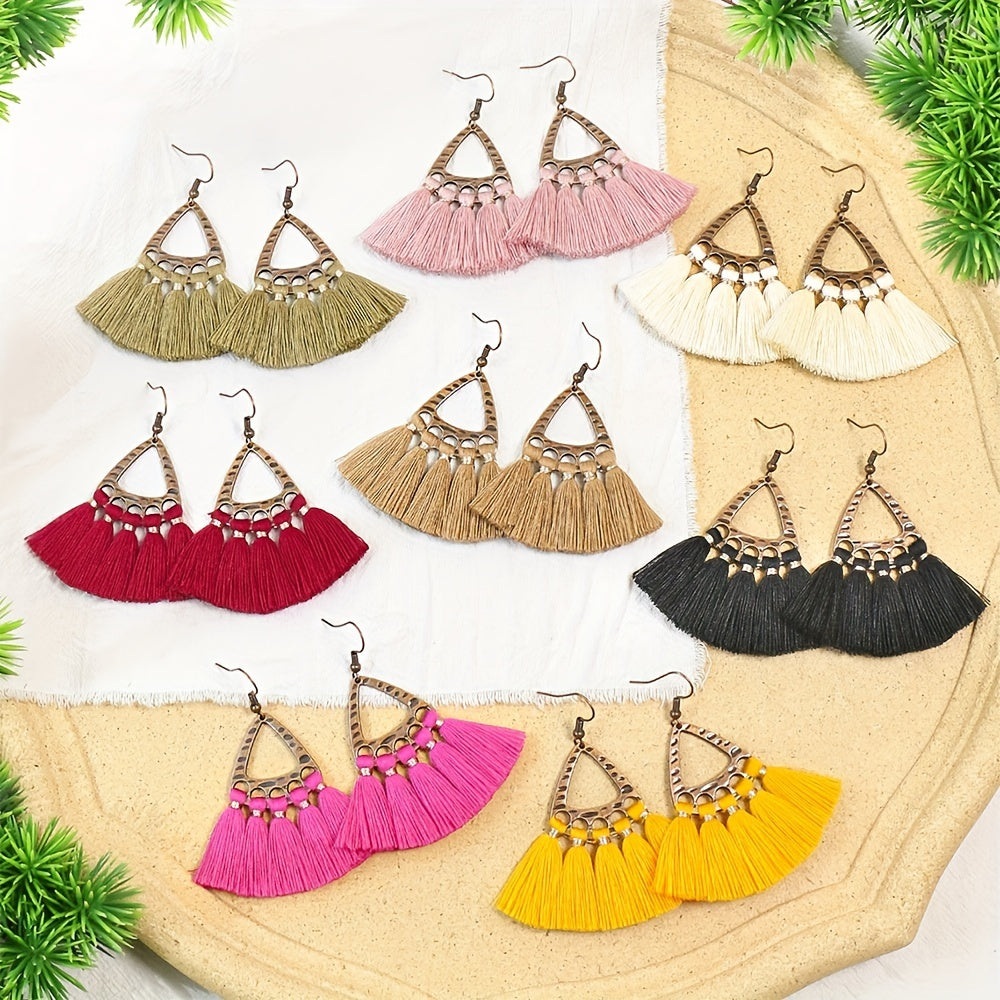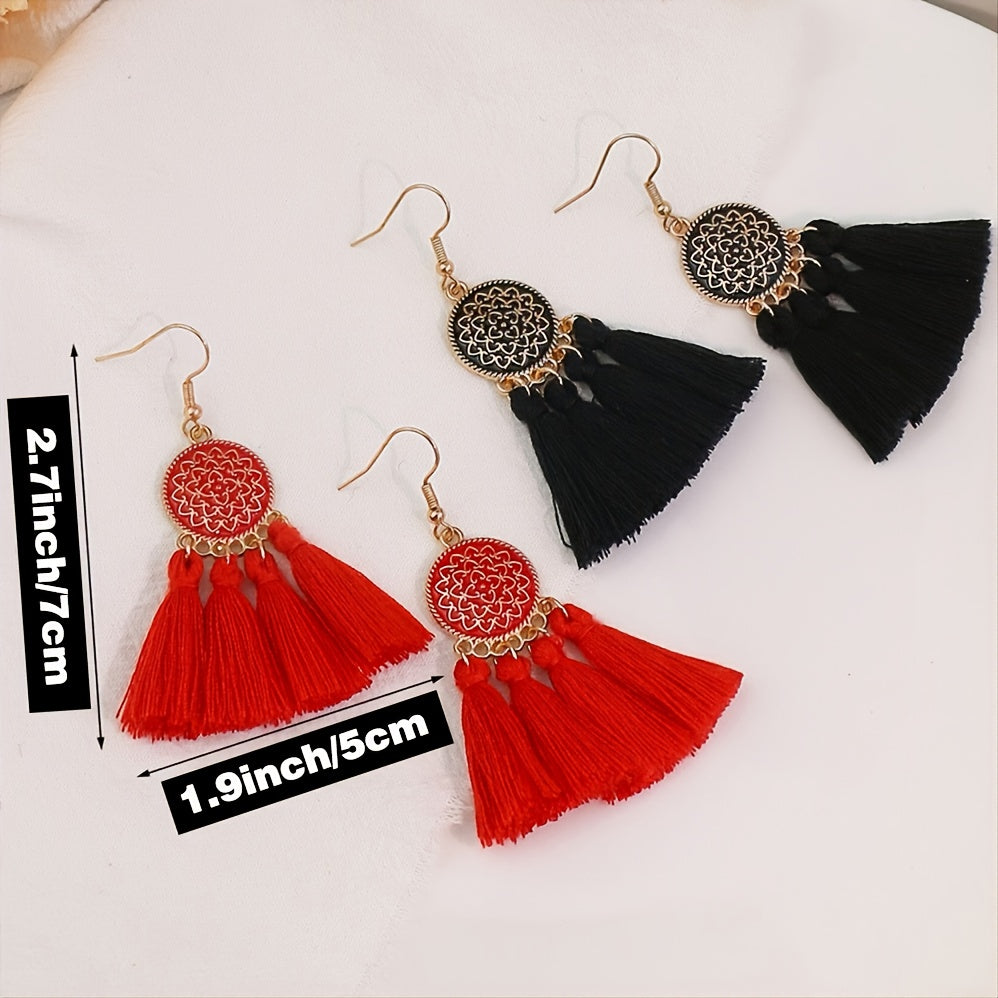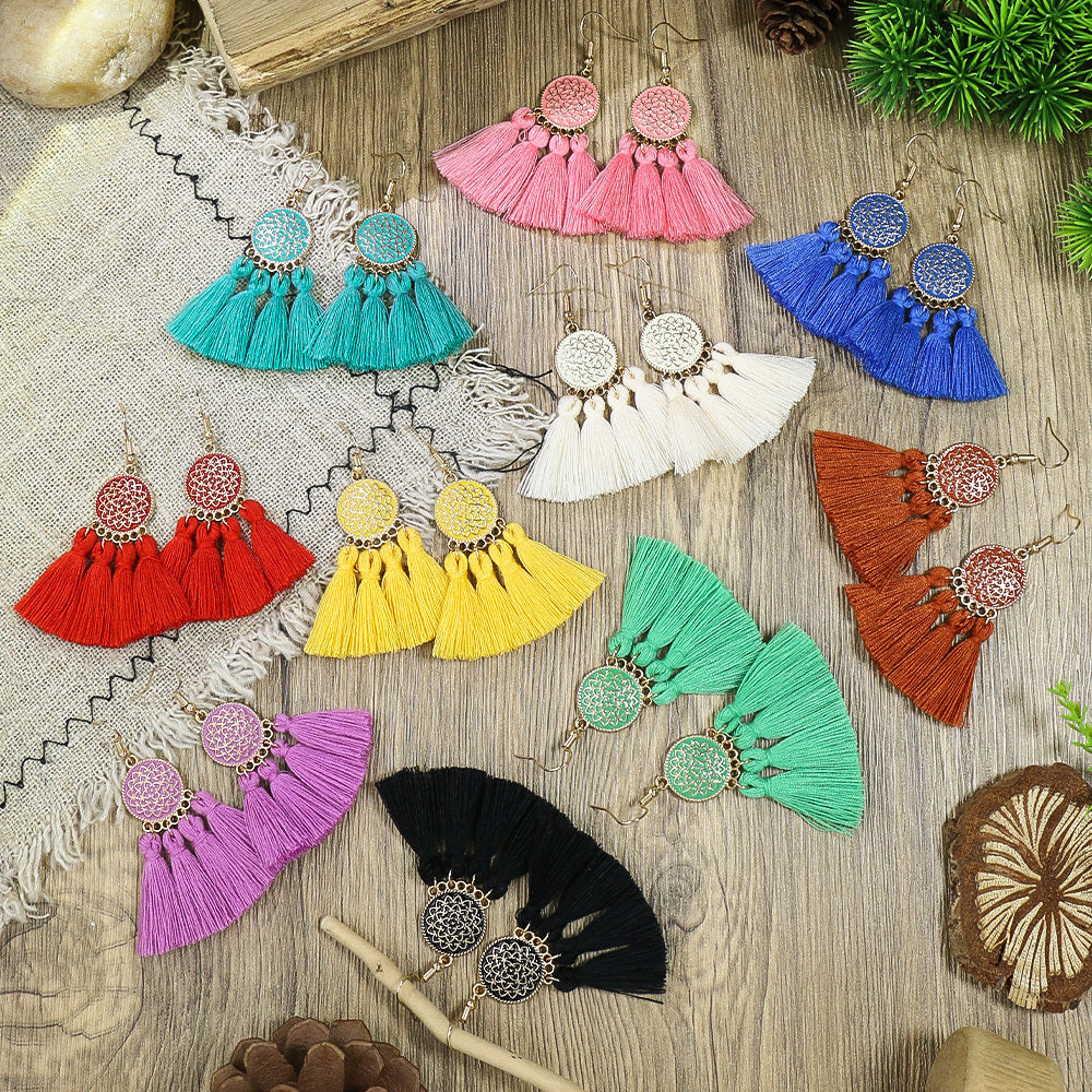 10 Pairs Polka Dot Flower Tassel Charm Earrings