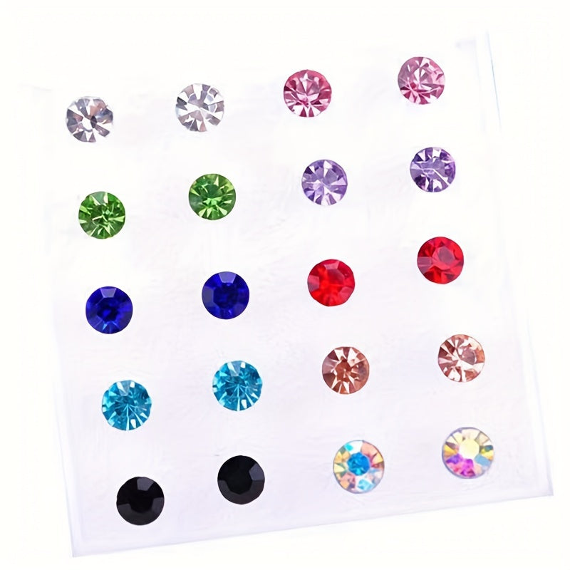 10 Pairs Rhinestone Stud Earring Set - Daily Wear Jewelry Gift