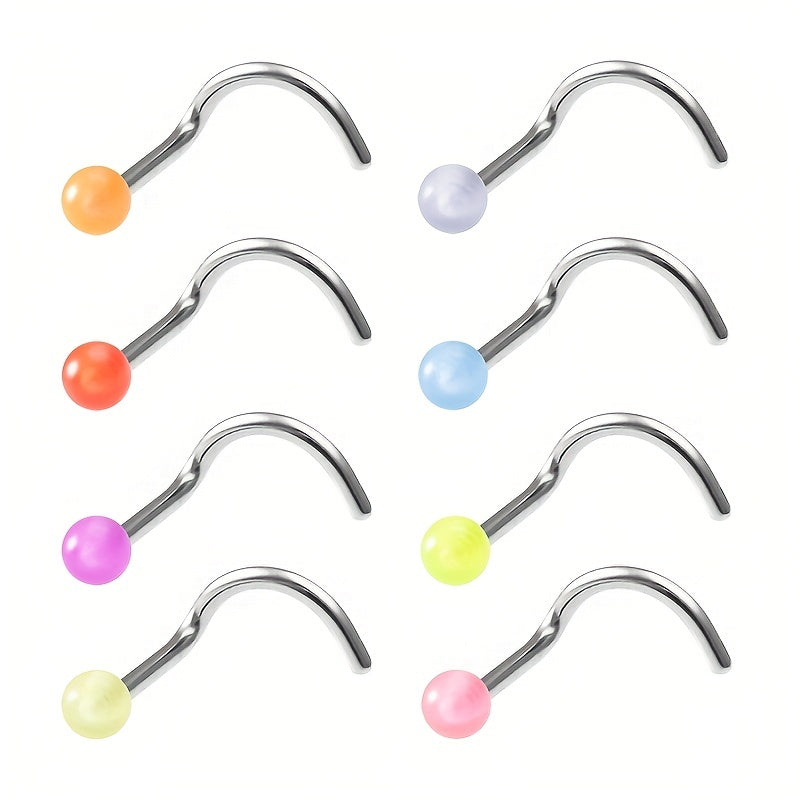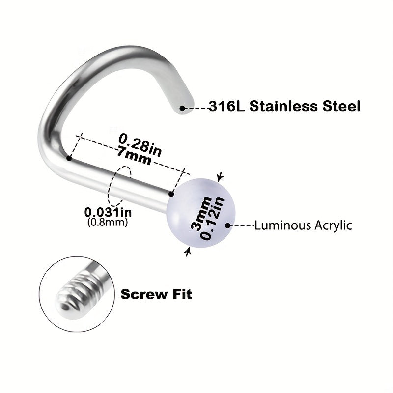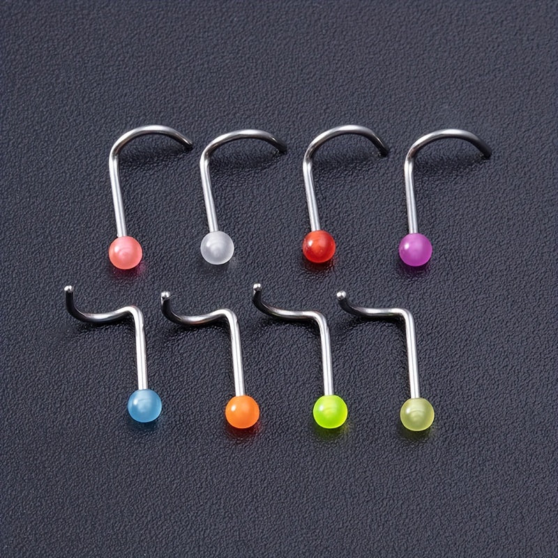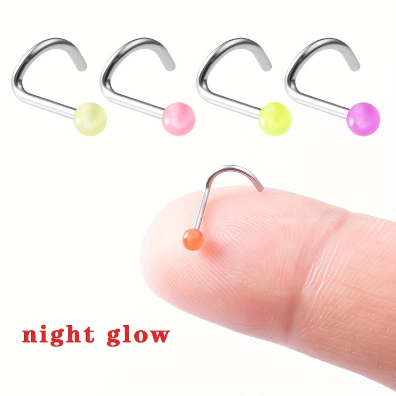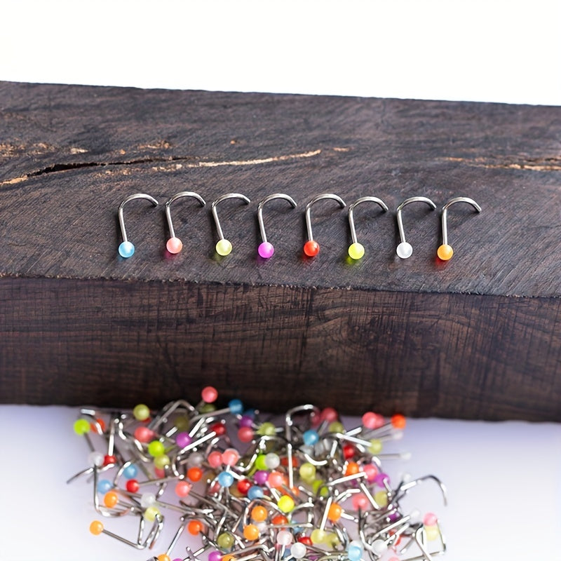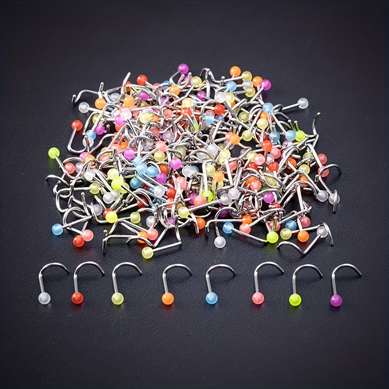 Add a touch of uniqueness to your look with these luminous nose rings. Made of high-quality plastic, these nose rings come in a set of 10, perfect for mixing and matching.