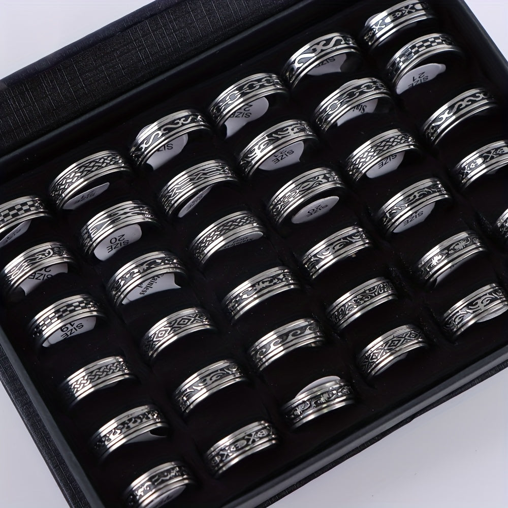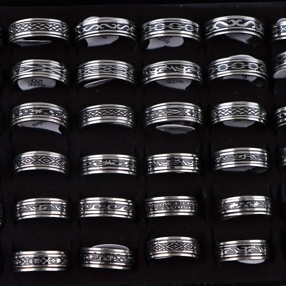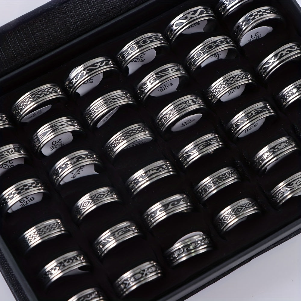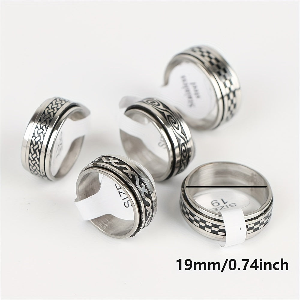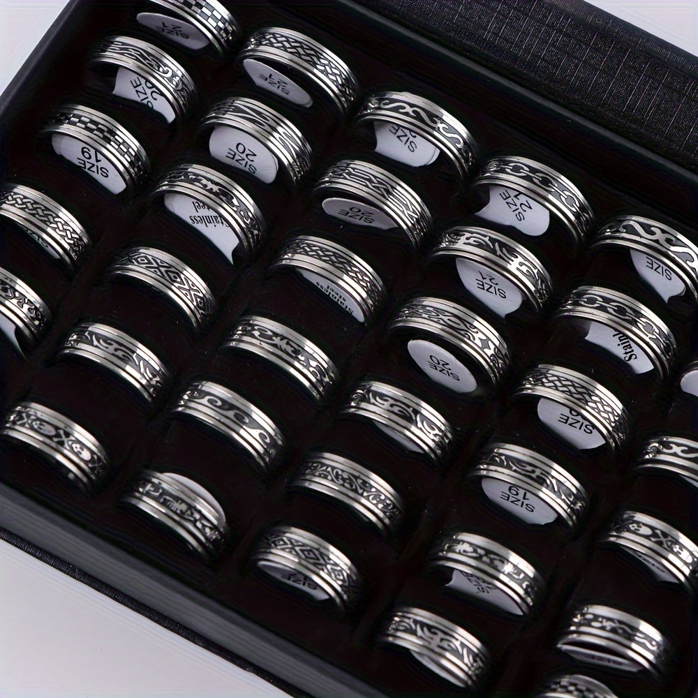 Add a touch of vintage style to your outfits with this set of 10 stainless steel spinner rings. Perfect for daily wear, holiday parties, or as a thoughtful gift. Assorted sizes included in the set.