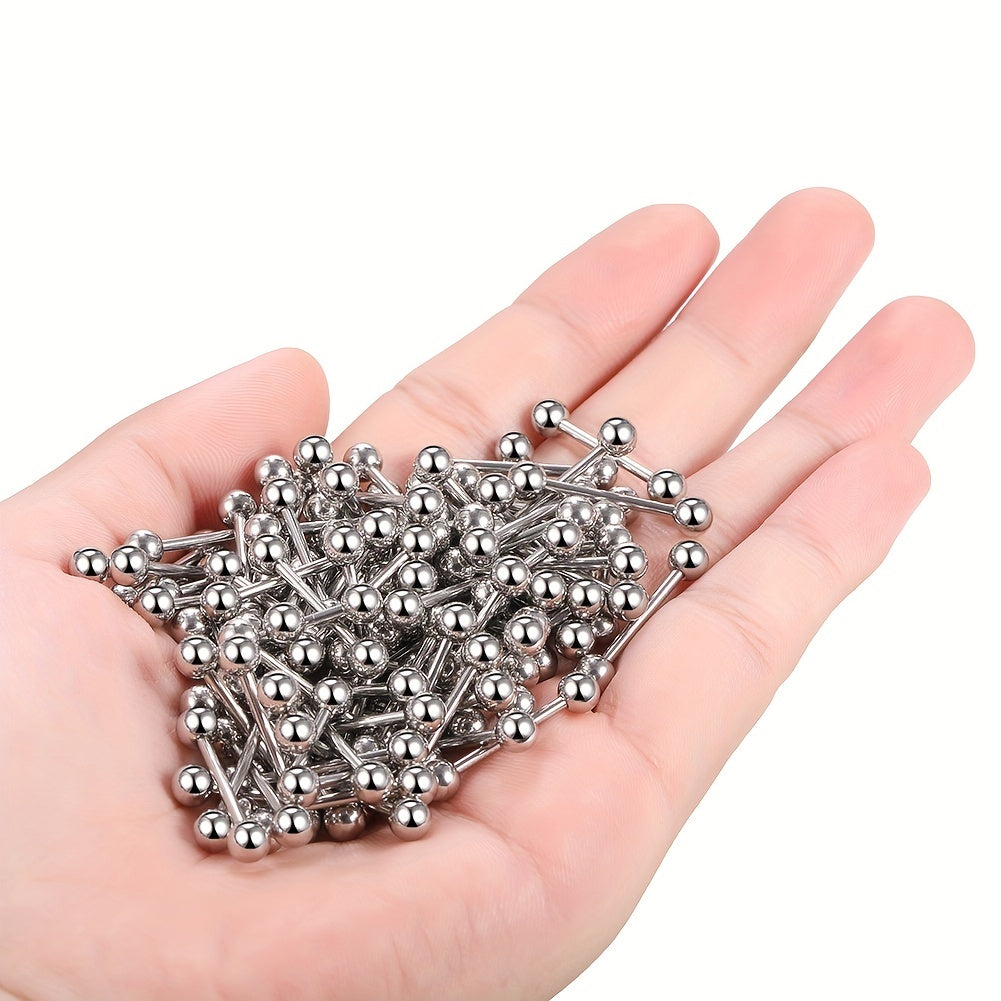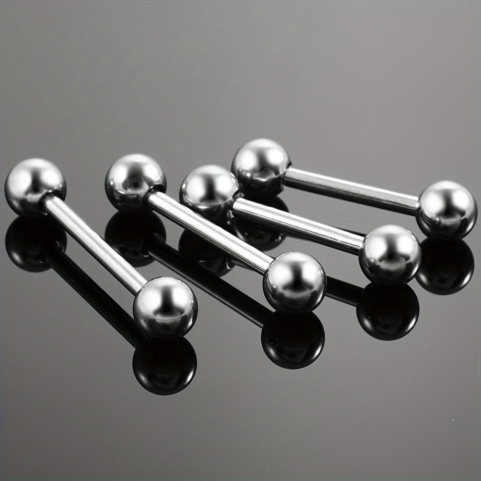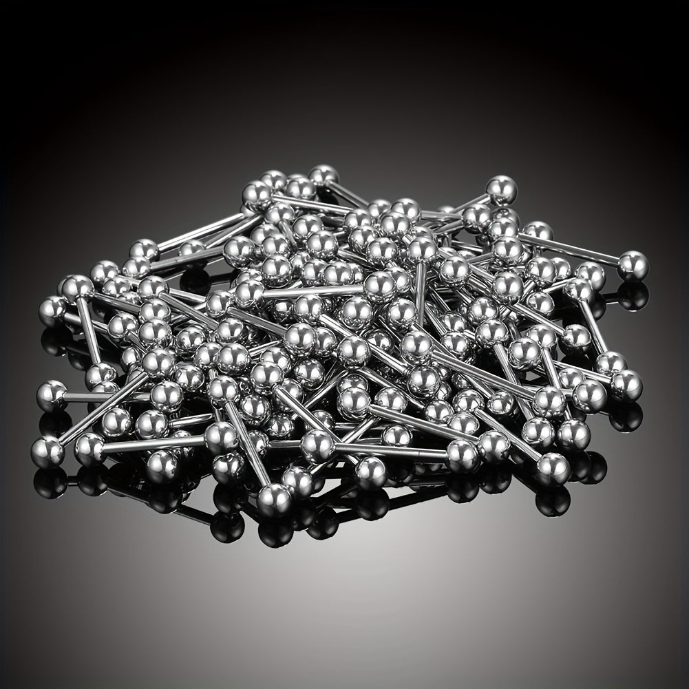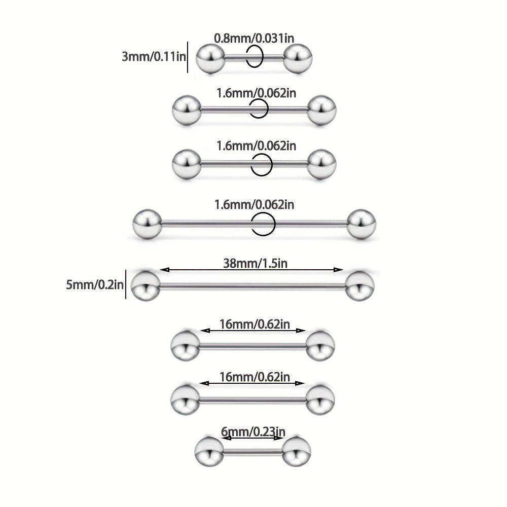 Adorn your piercings with this set of 10 round ball and barbell shape tongue rings and nipple rings. Made of high-quality stainless steel for durability and hygiene.