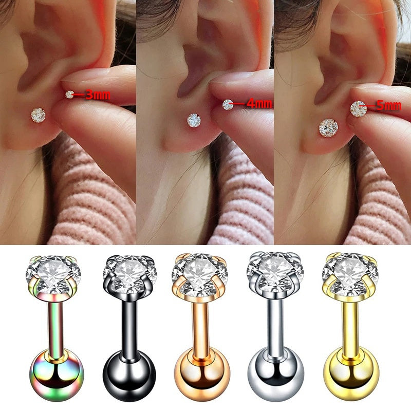10 Pcs Zircon Inlaid Stud Earrings Cartilage Piercing Jewelry