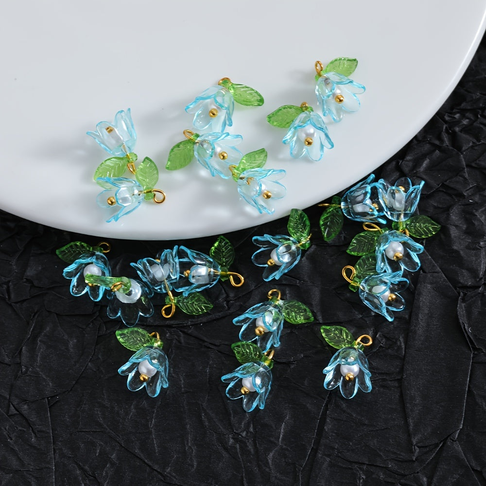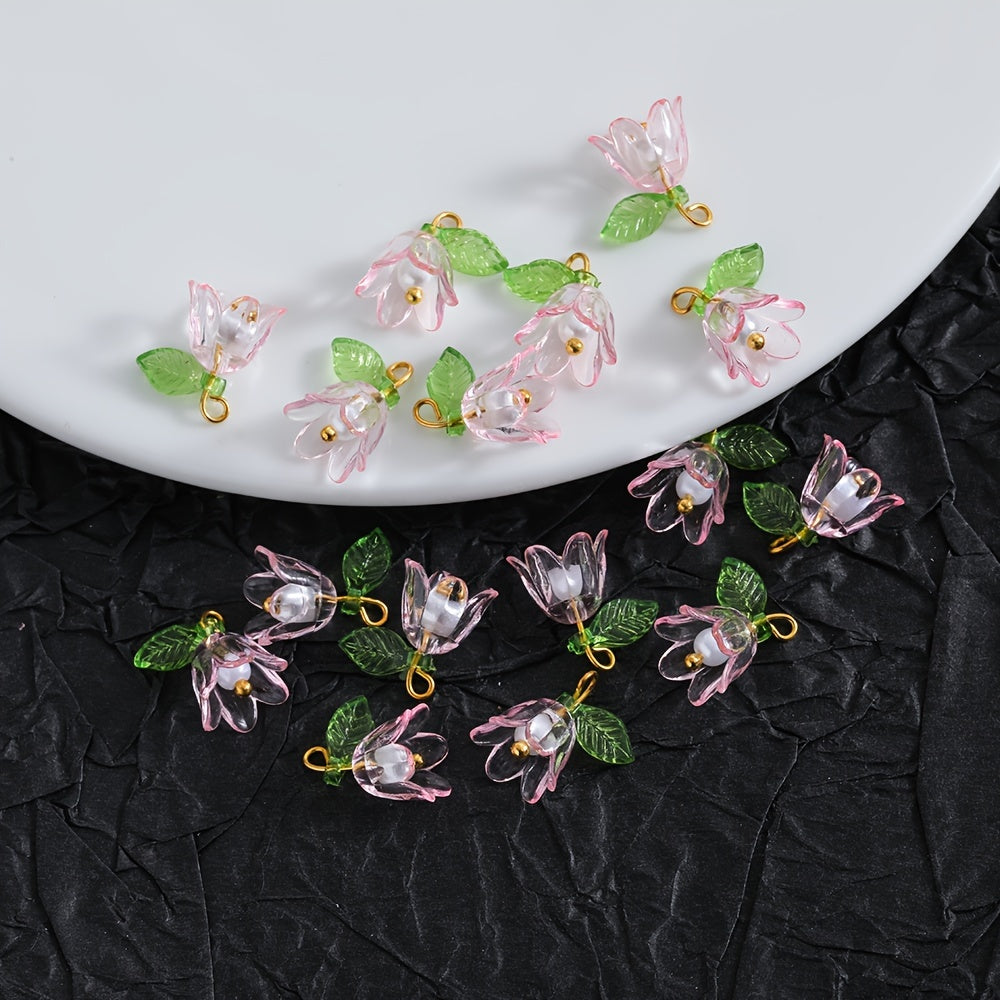 Create beautiful jewelry with this set of 3D transparent lily flower charms, perfect for necklaces, earrings, keychains, and more.