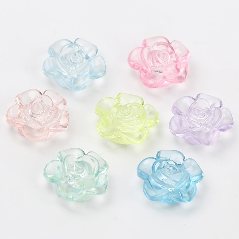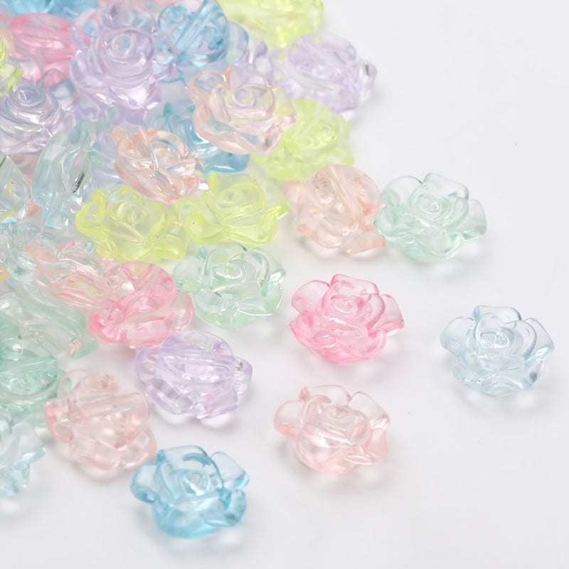 These 12mm rose flower acrylic beads are perfect for creating your own bracelets, necklaces, and other jewelry. Add a touch of elegance and charm to your DIY projects with these colorful beads.