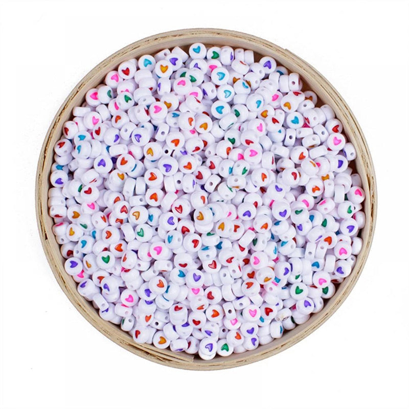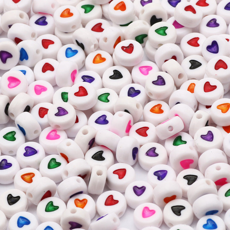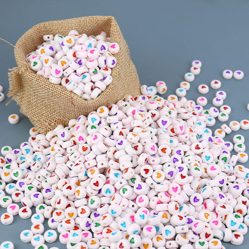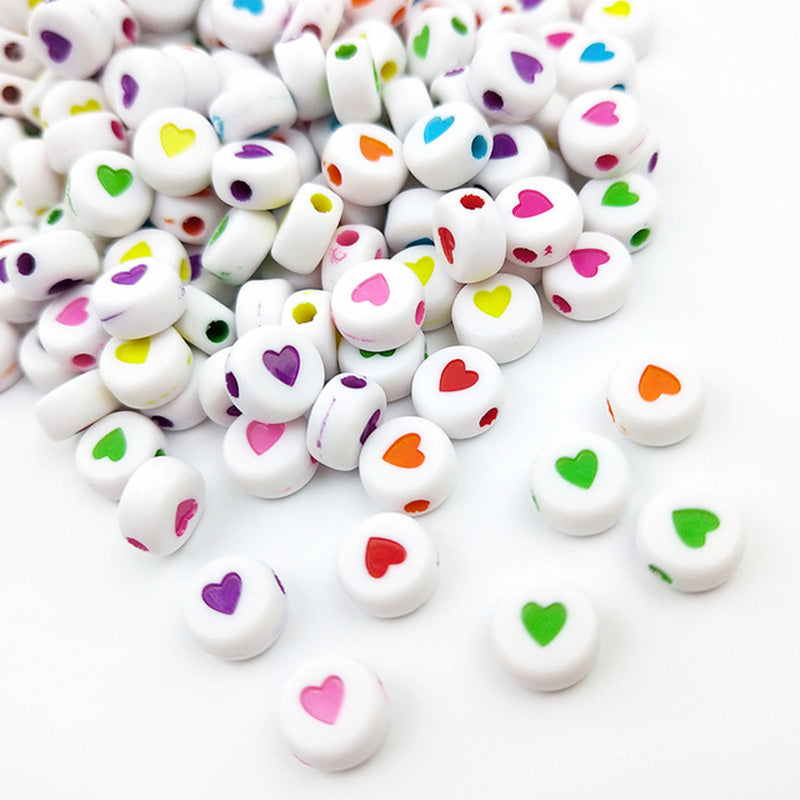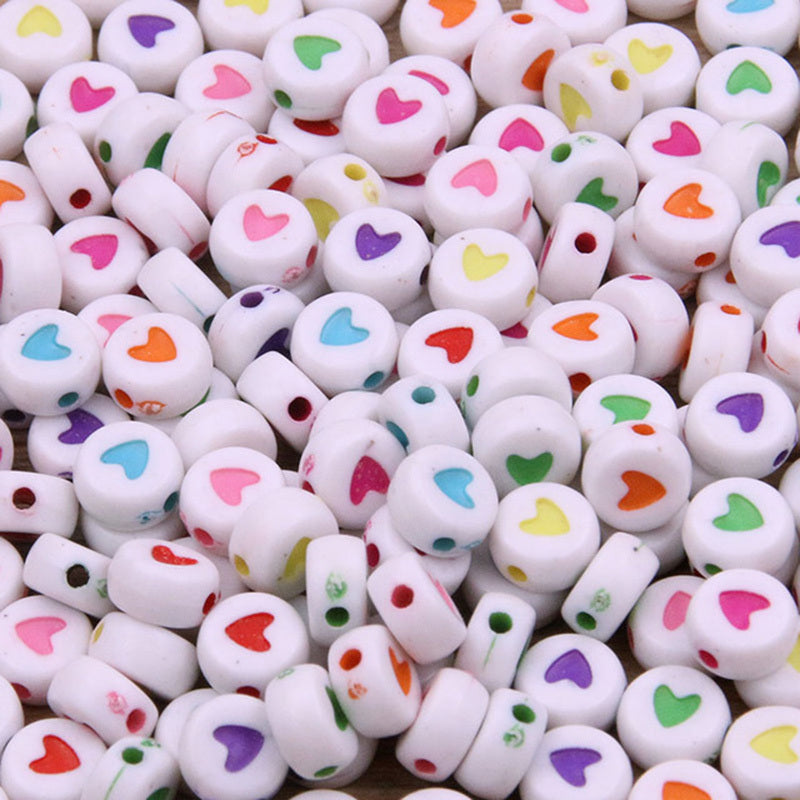 100pcs 7mm Mixed Acrylic Beads Round Flat Heart Spacer Beads For Jewelry Making