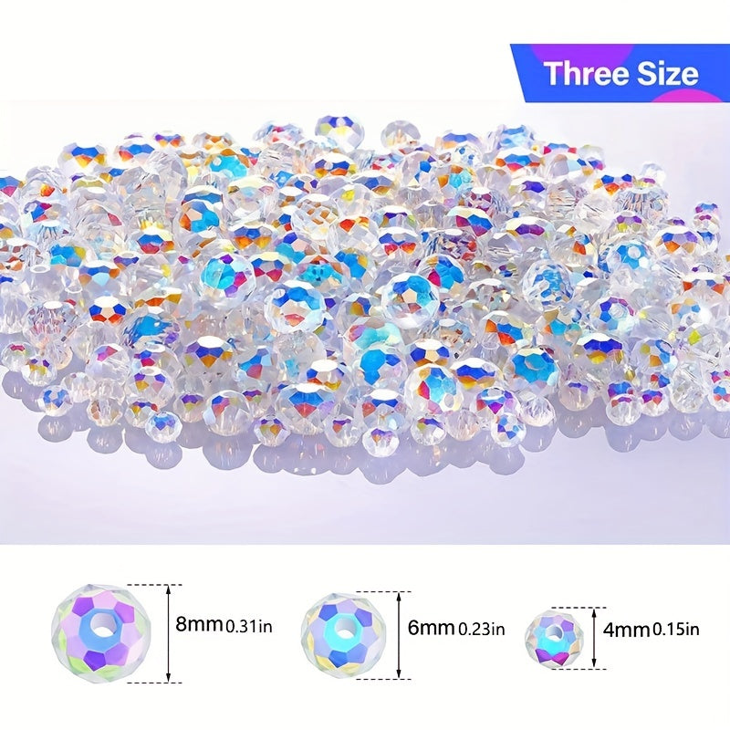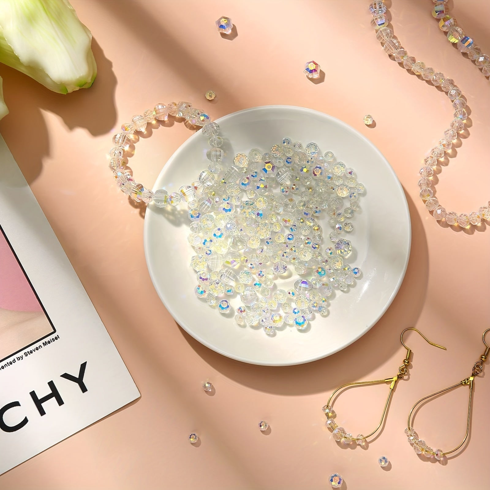 This set includes 100 faceted glass beads in 4, 6, and 8mm sizes for creating earrings, bracelets, necklaces, and other accessories.