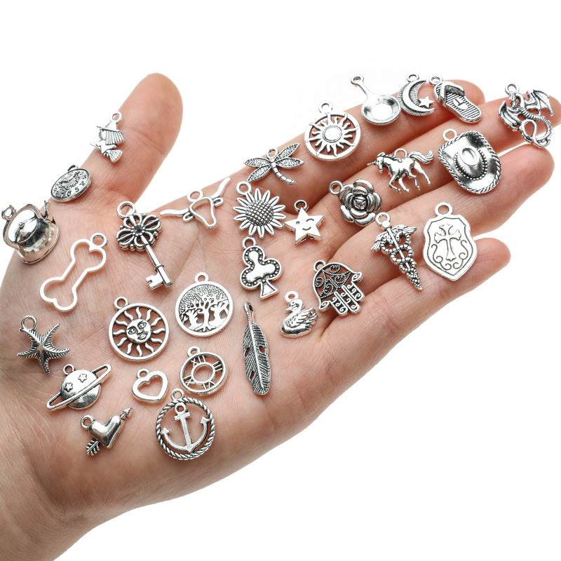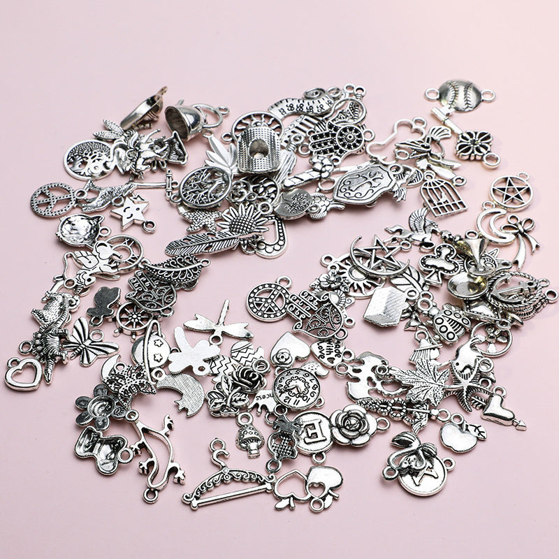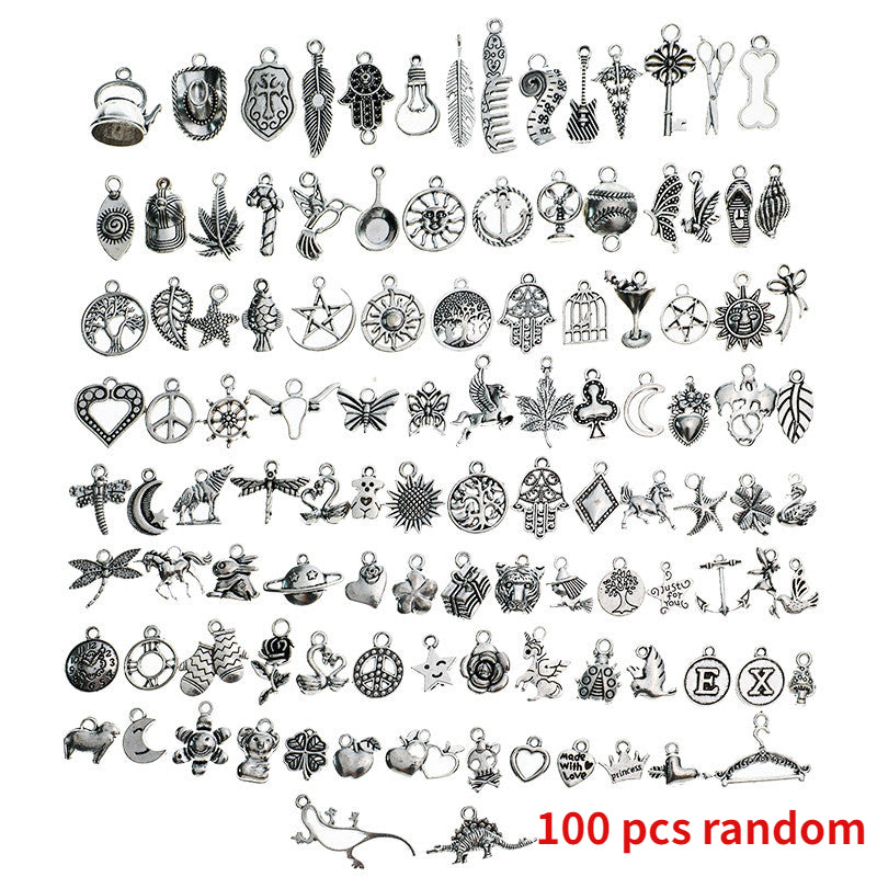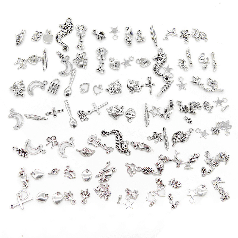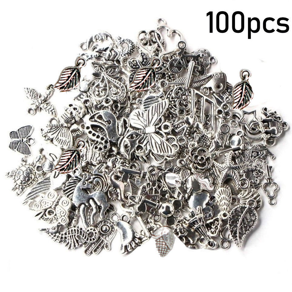 Get creative with these 100 mixed animal pattern silvery alloy charms to make your own unique bracelet or necklace. These accessories are semi-finished for easy crafting.