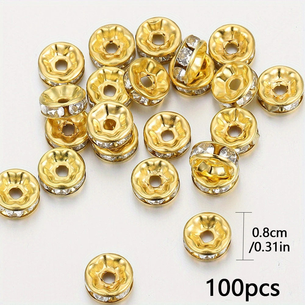 Add some sparkle to your accessories with these 100pcs rhinestone spacers. Perfect for crafting earrings, bracelets, necklaces, or any other project that needs a touch of glam.