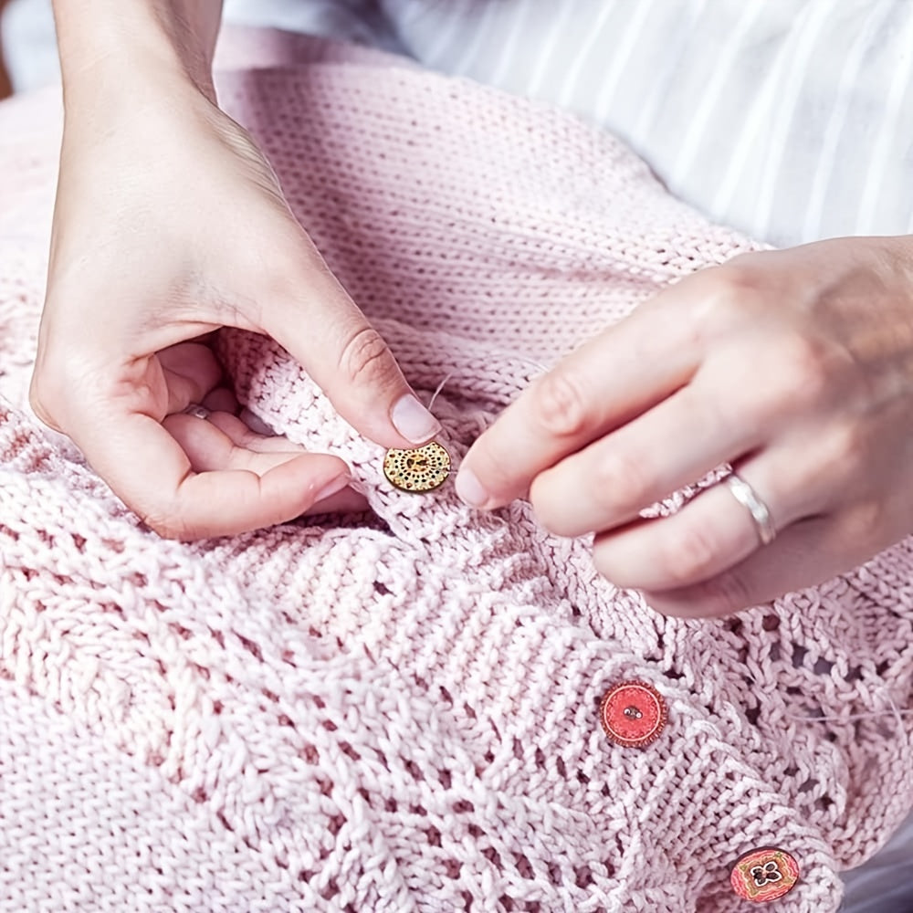 Add a touch of nature to your clothing and craft projects with these wooden buttons. Each pack contains 100 round and butterfly-shaped buttons that can be easily sewn onto various items.