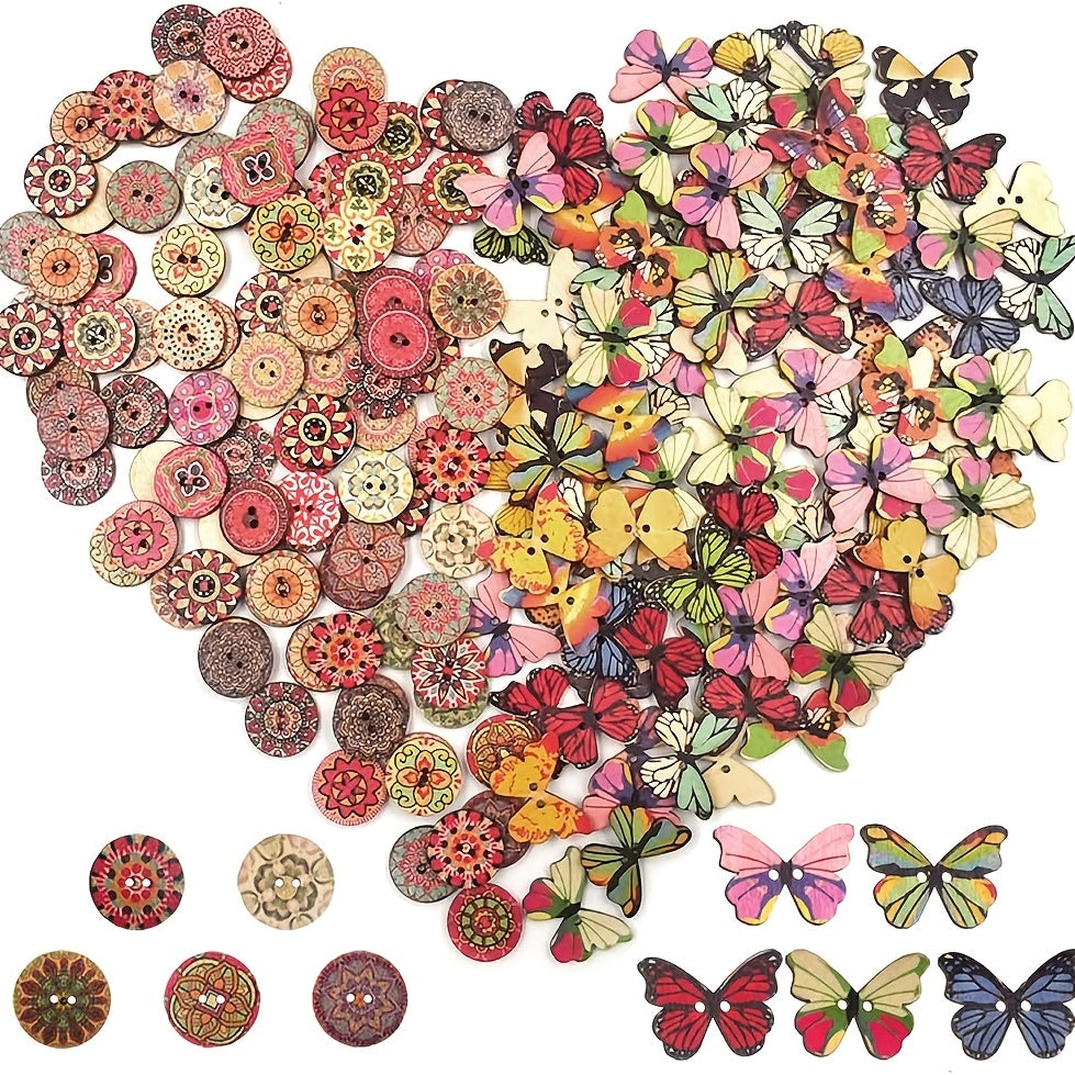 100pcs Round & Butterfly Wooden Flower Buttons 2 Holes DIY Clothing Sewing Craft