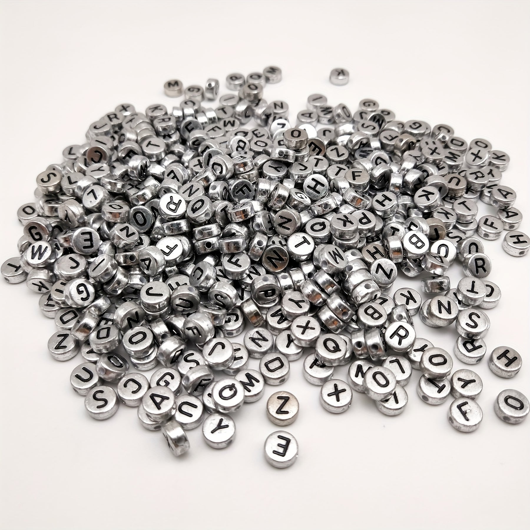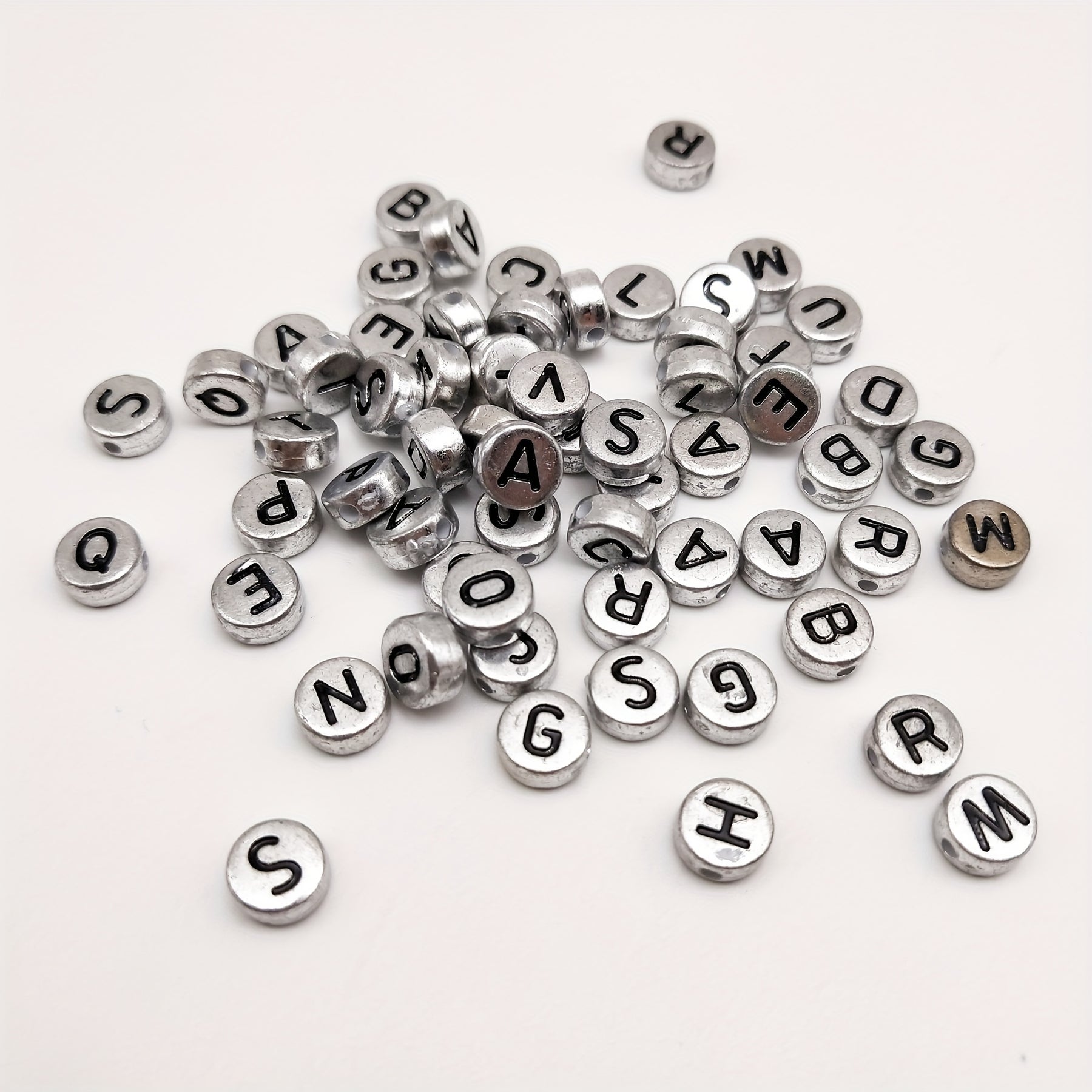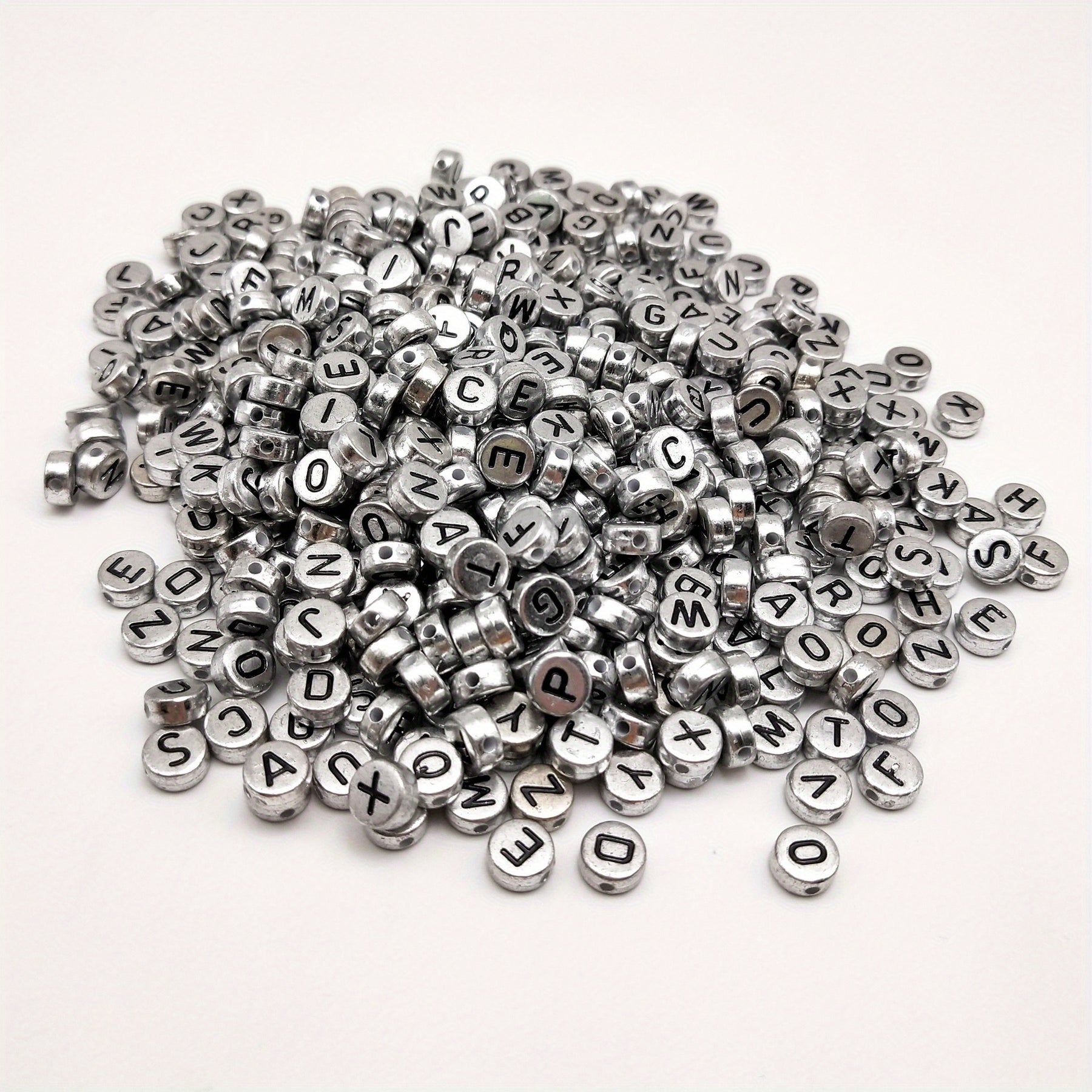 Get creative with these silver letter beads! Perfect for necklaces, bracelets, and earrings. Semi-finished jewelry accessories material.