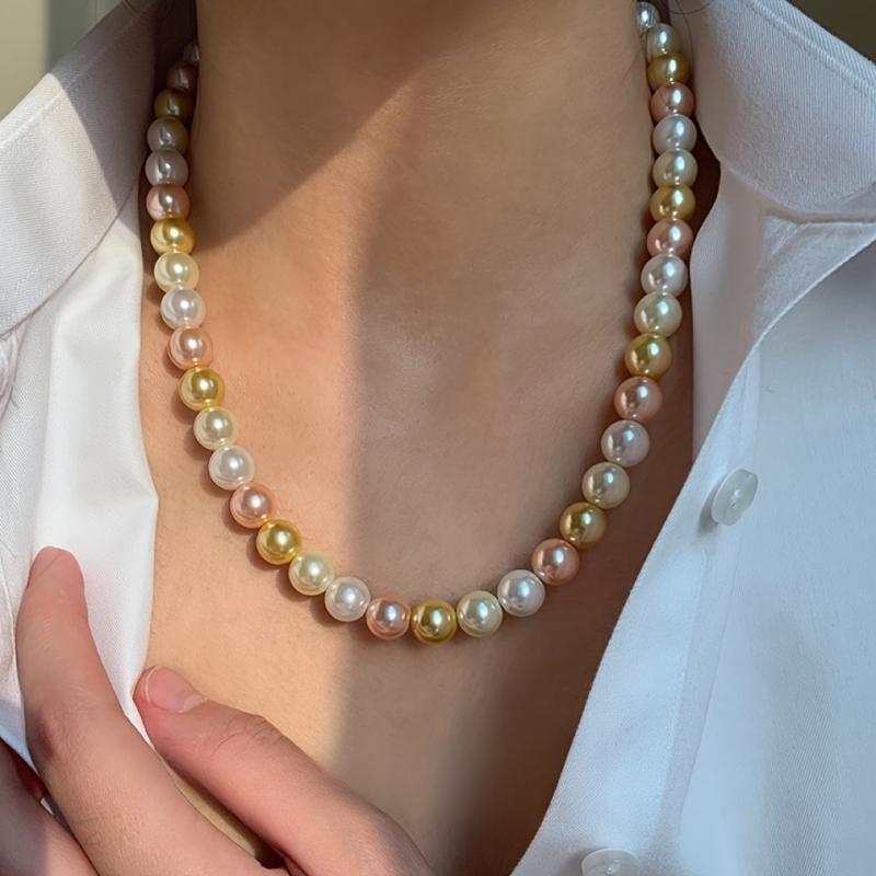 Elevate your style with this high-end 10mm mixed pearl necklace. Perfect for daily wear or special occasions. Versatile and elegant design.