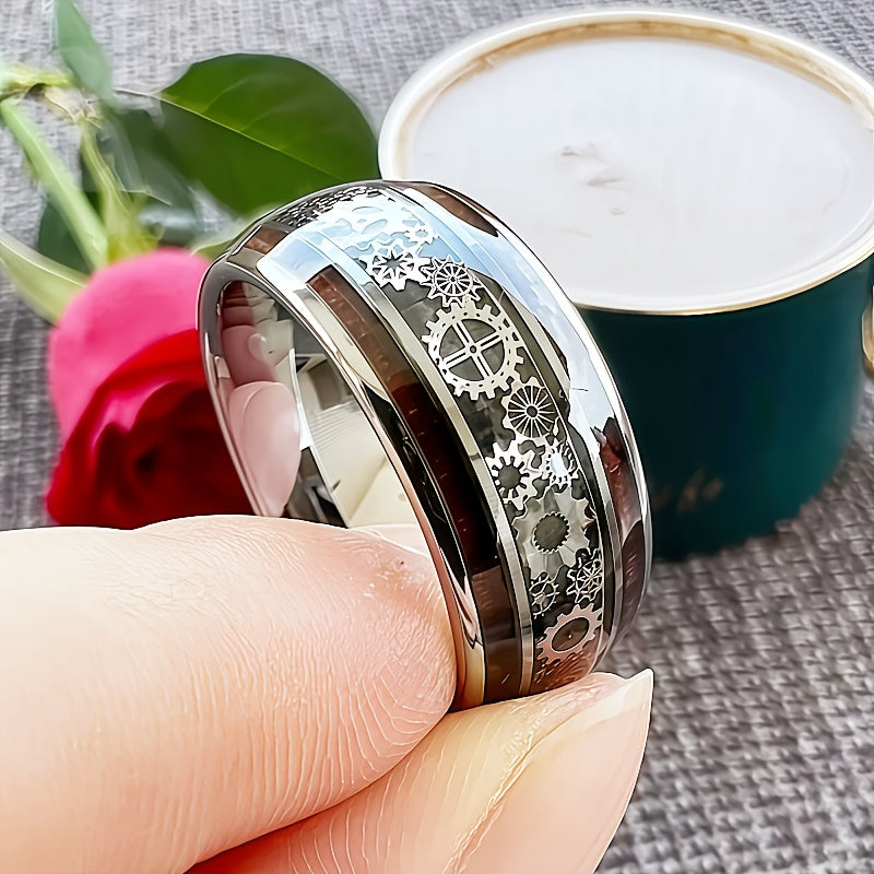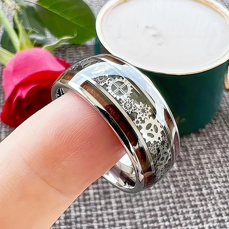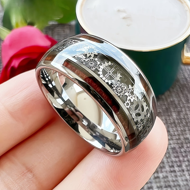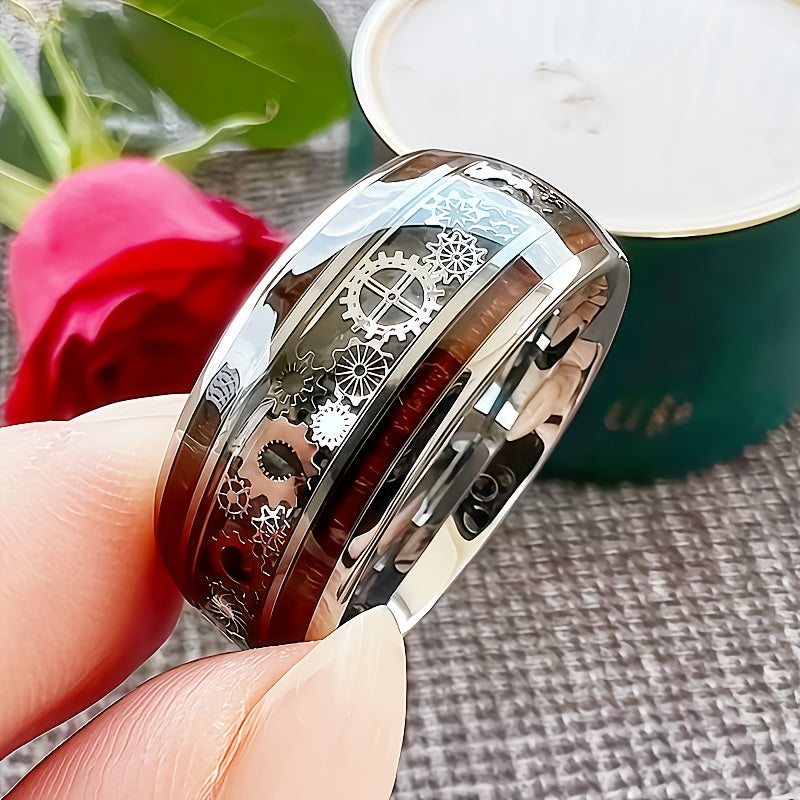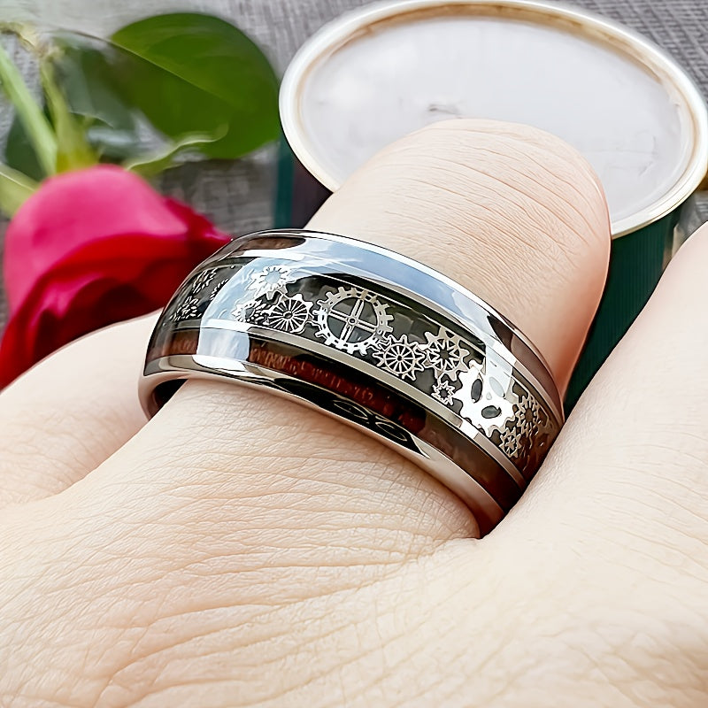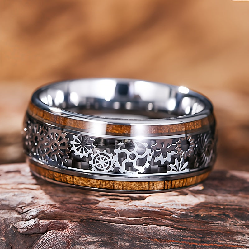 This striking gear ring features a unique combination of stainless steel and Koa wood inlay, making it perfect for hip hop, punk, or rock styles. The polished finish adds a touch of elegance, making it suitable for engagements, weddings, or casual wear.