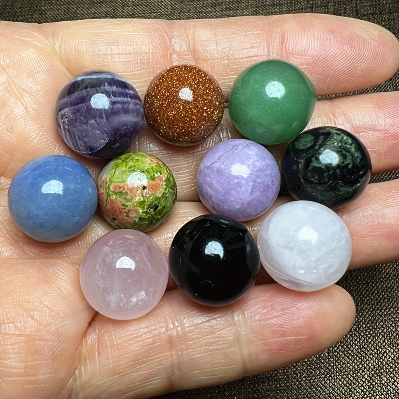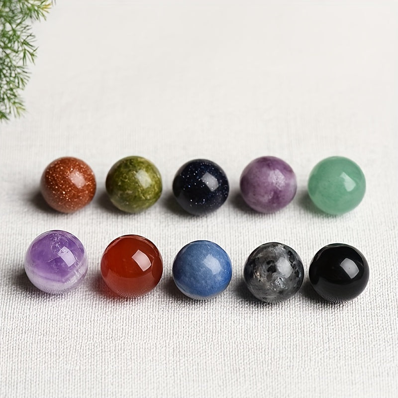 Enhance the energy in your space with this set of 10 natural crystal blend balls. Each ball is unique and brings a touch of healing and positive vibes to your home or office.