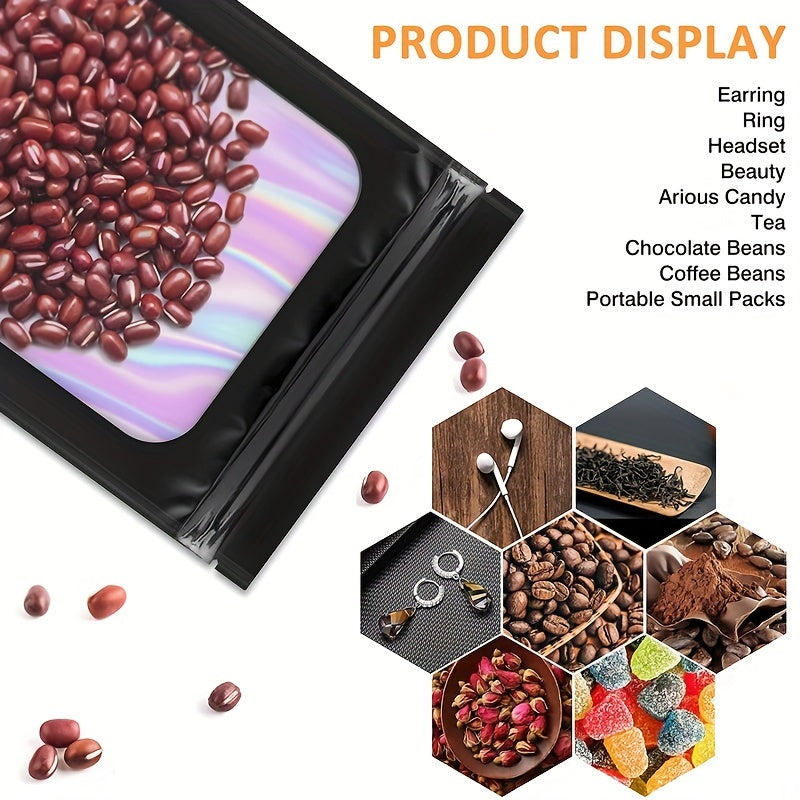These Mylar food storage bags are perfect for storing party favours, food, self-sealing supplies, and jewelry. The clear window allows you to easily see the contents of the bag.