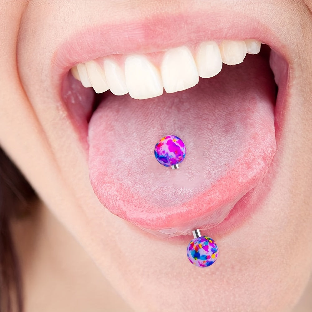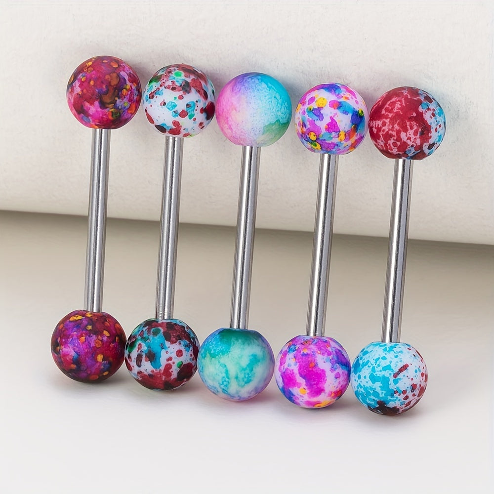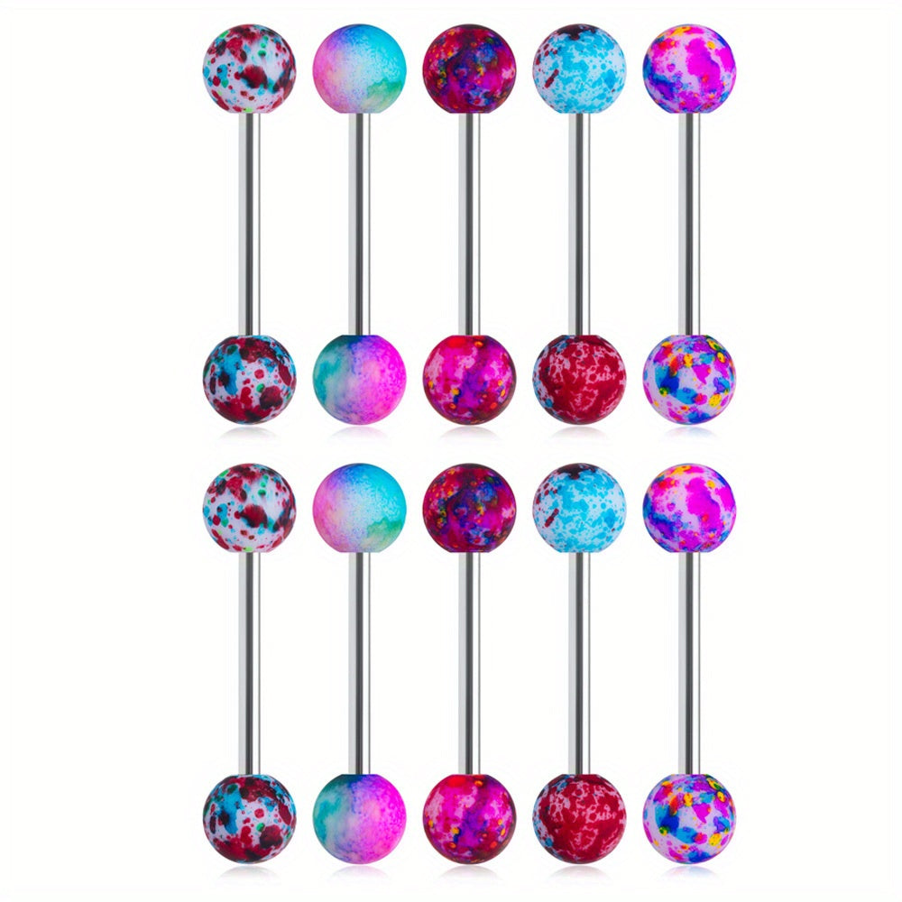 Enhance your body piercing style with this set of 10 acrylic colorful ball tongue rings. Made of high-quality materials, these barbells are perfect for expressing your unique personality.