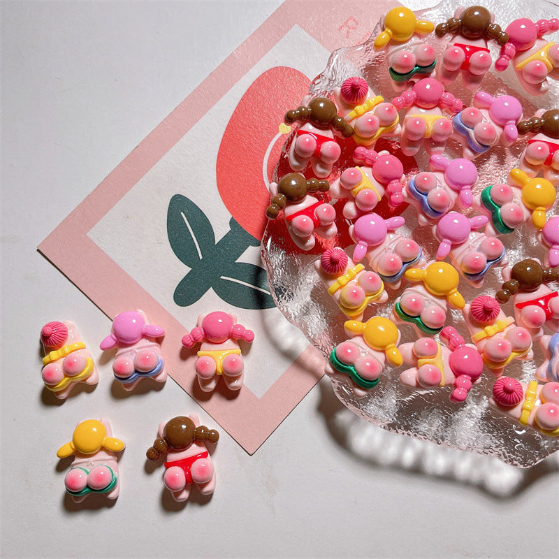 Add a touch of fun with these cute bikini girls charms. Perfect for decorating your car interior, fridge, hair accessories, or mobile phone case.