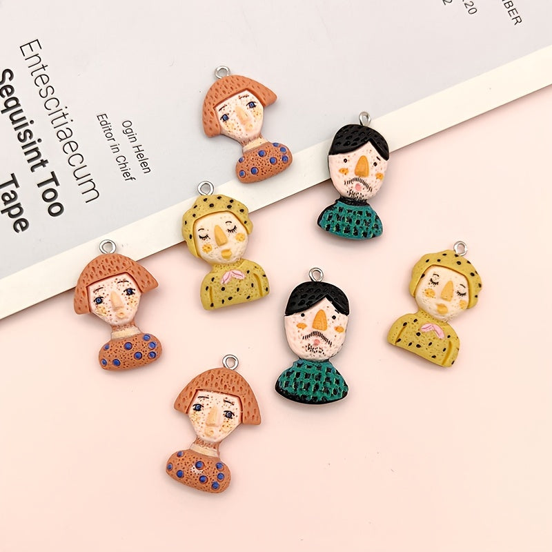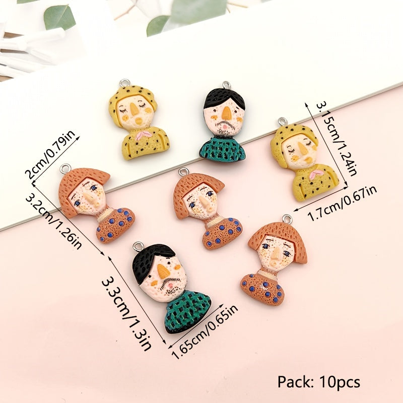 This set includes 10 pieces of cartoon graffiti half body figure resin accessories for earrings, phone pendants, and key rings. Add a fun touch to your accessories with these colorful characters.