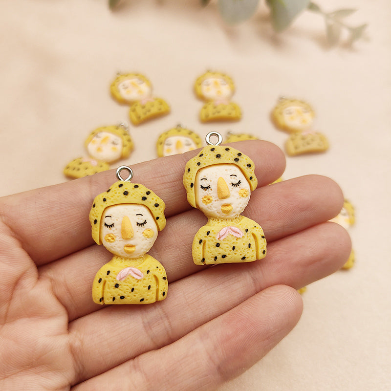 10pcs Cartoon Graffiti Figure Resin Earring Phone Pendant Key Ring