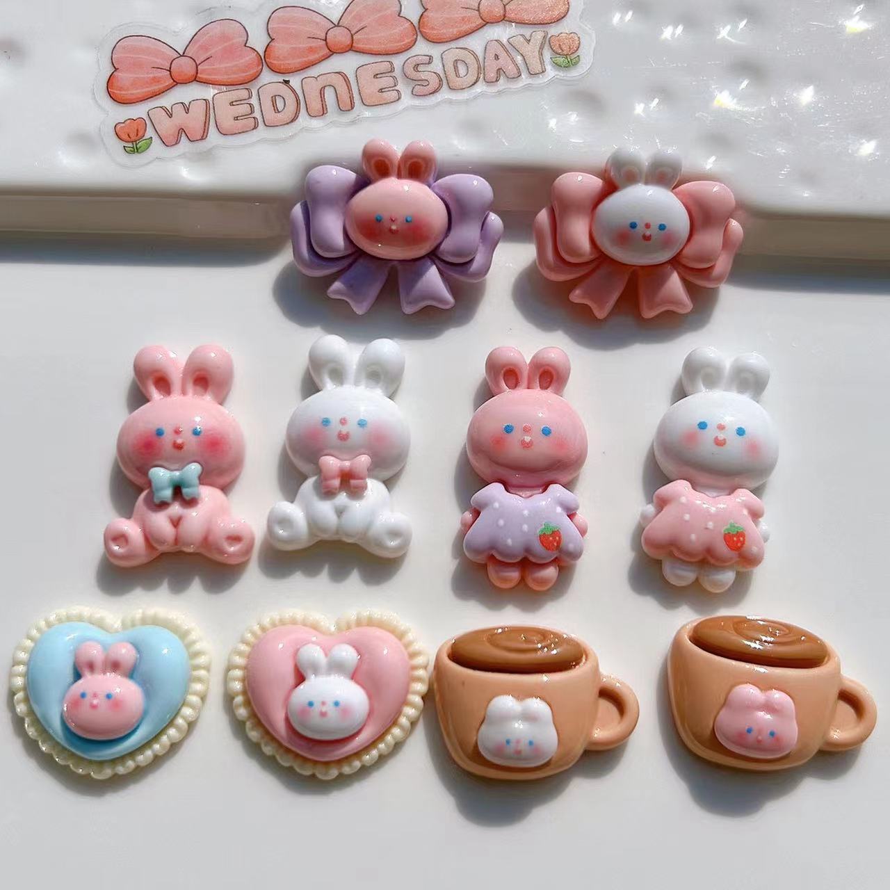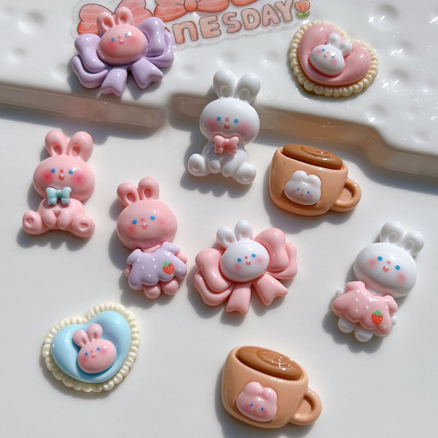 Add a touch of cuteness to your DIY projects with these 10pcs cartoon rabbit resin charms. Perfect for hair clips, phone cases, and other embellishments.