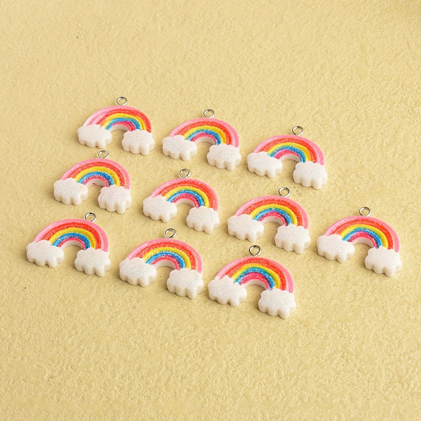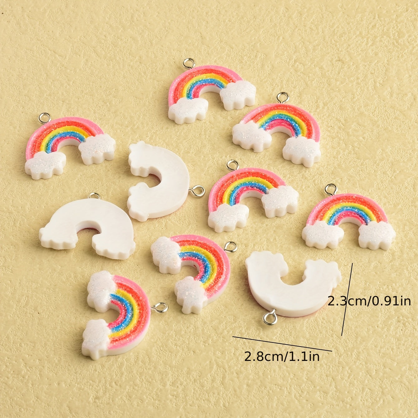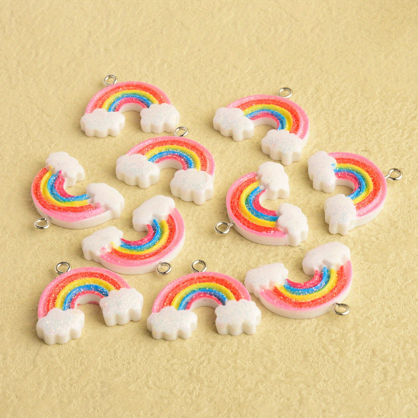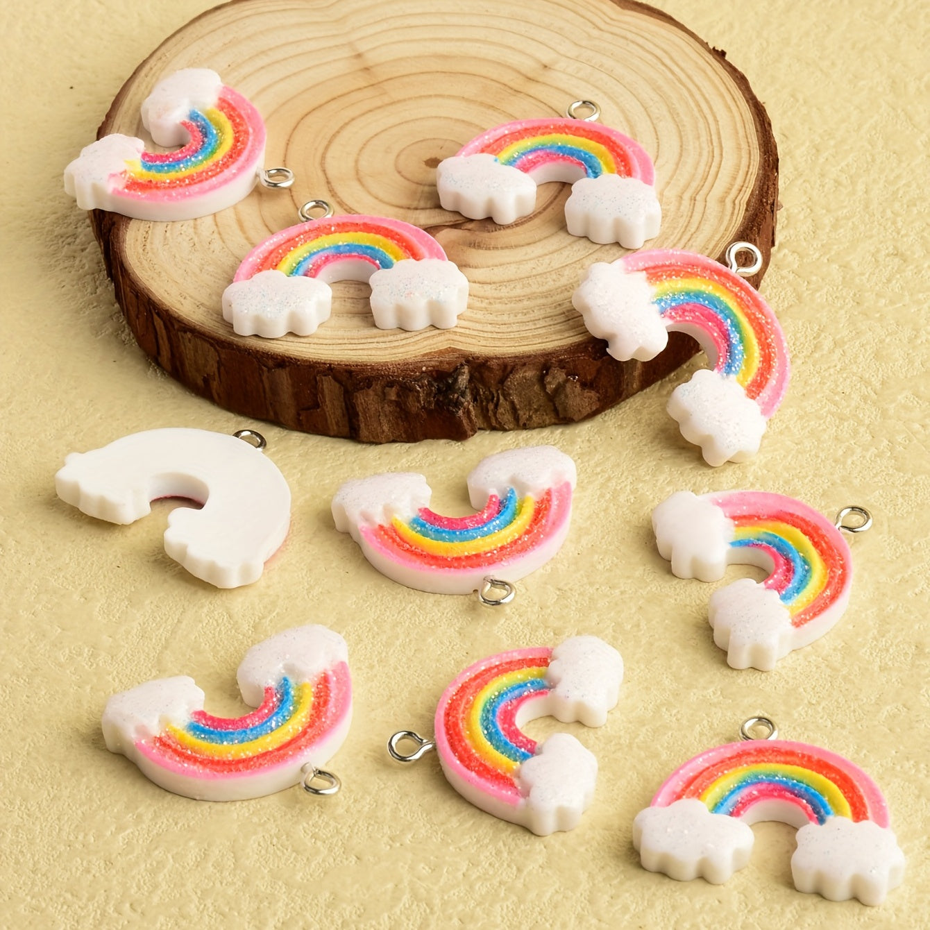 Add a whimsical touch to your creations with these cute cartoon rainbow pendants. Perfect for making earrings, necklaces, bracelets, and more.
