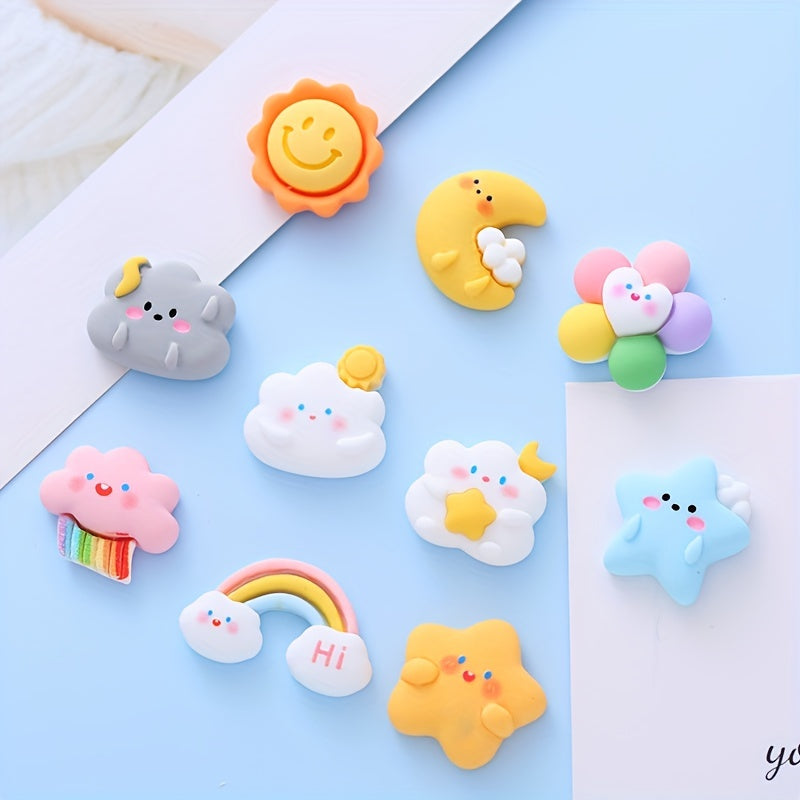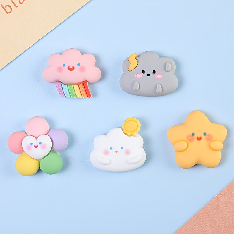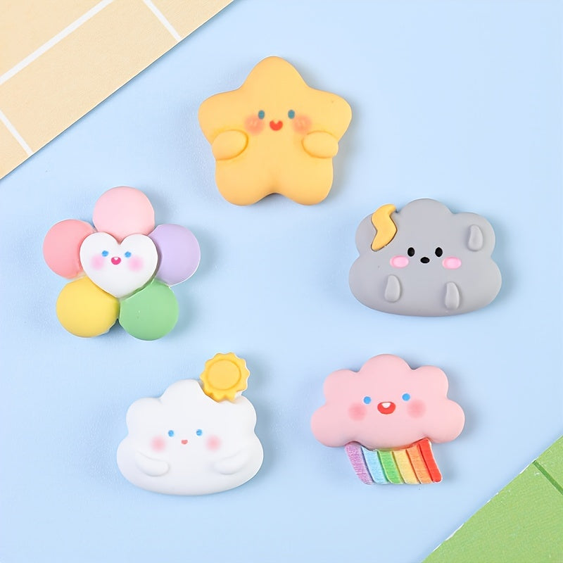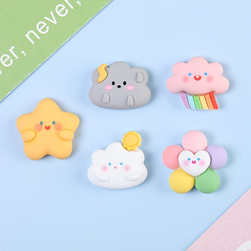 Add a touch of whimsy with these lovely cloud and flower stickers. Ideal for decorating hair accessories, stationery, mobile phone cases, key chains, cups, shoes, and more!