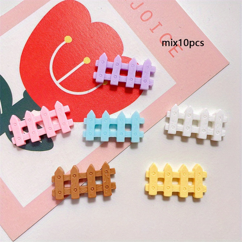 Enhance your DIY projects with this set of 10 colorful garden fence resin accessories. Perfect for earrings, phone cases, keychains, and more!