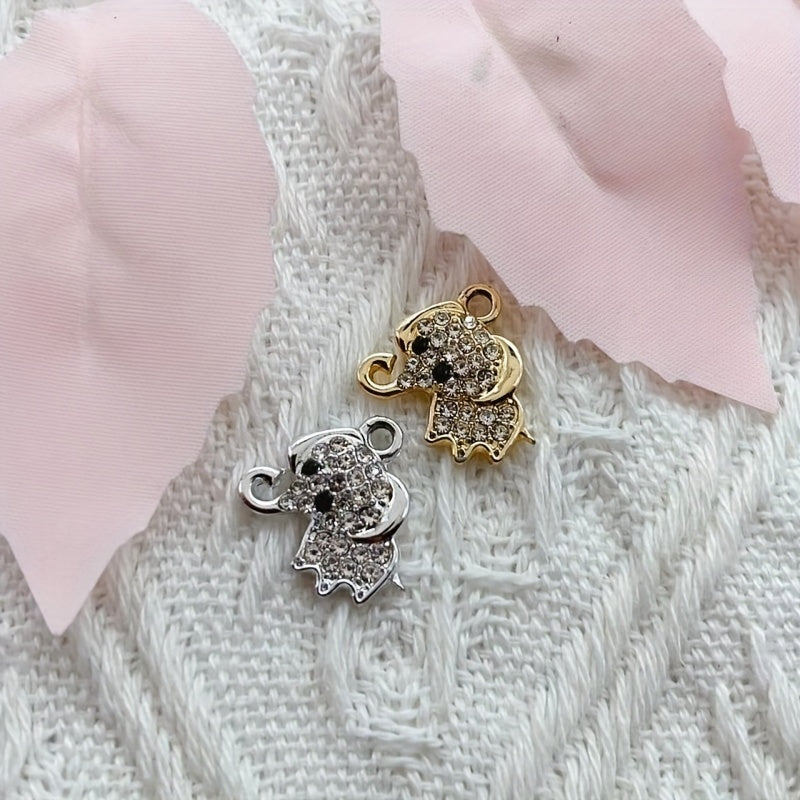These 10pcs elephant charm pendants are adorned with cubic zirconia, perfect for making bracelets, necklaces, and earrings. Add a touch of whimsy to your DIY jewelry projects.