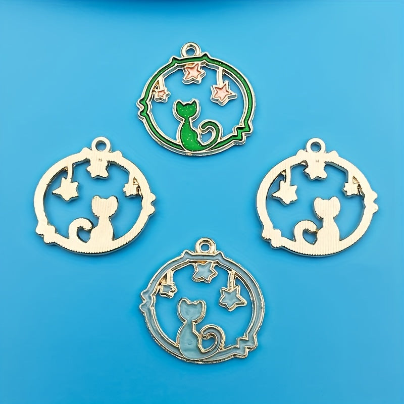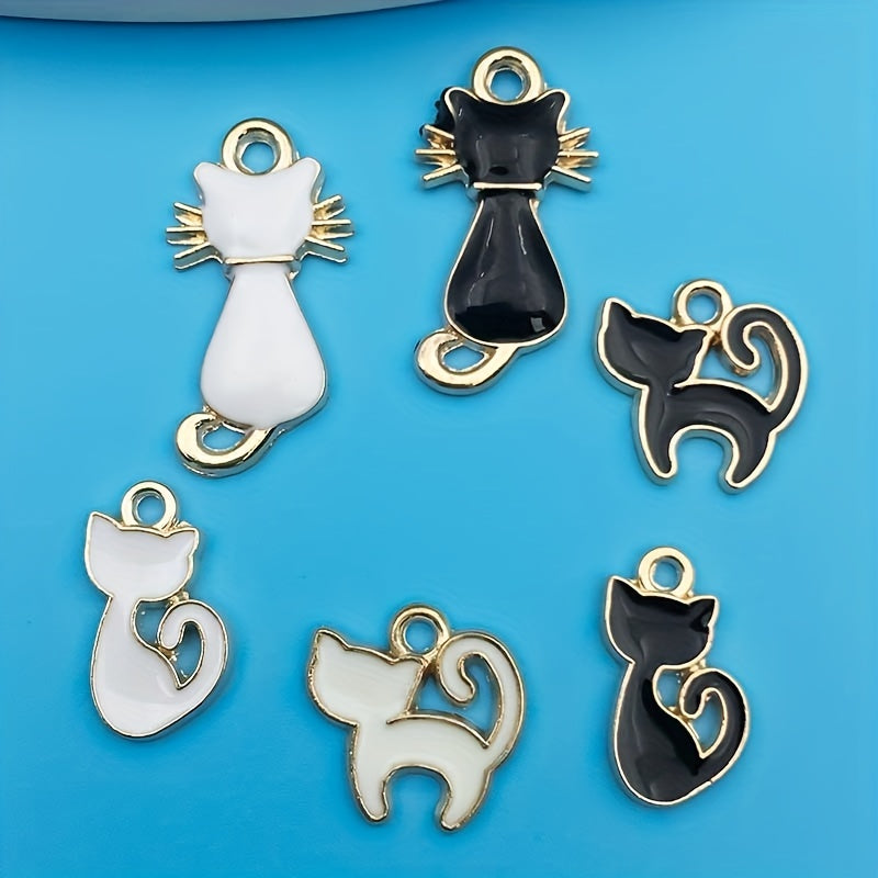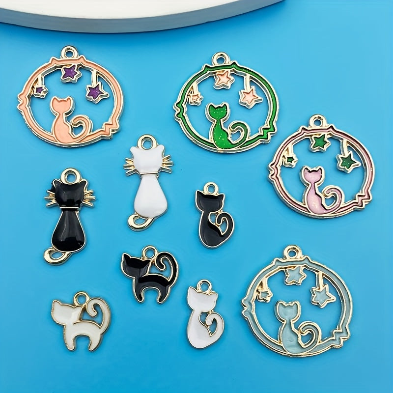 10pcs Drip Oil Cat Pendants DIY Jewelry Making Set