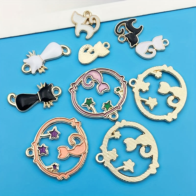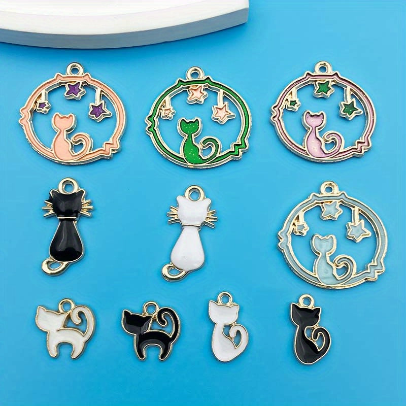 This set includes 10 drip oil cat pendants for creating your own necklaces, bracelets, and earrings. Perfect materials for DIY jewelry making projects.