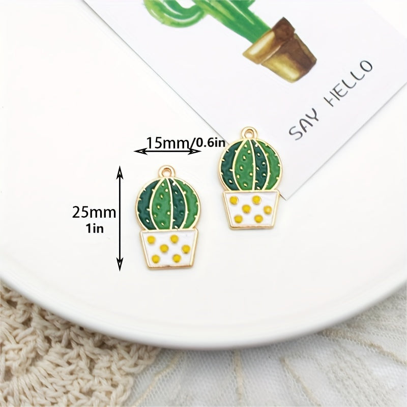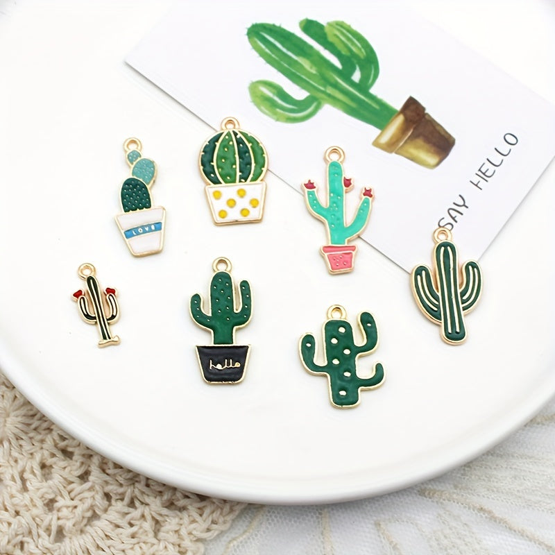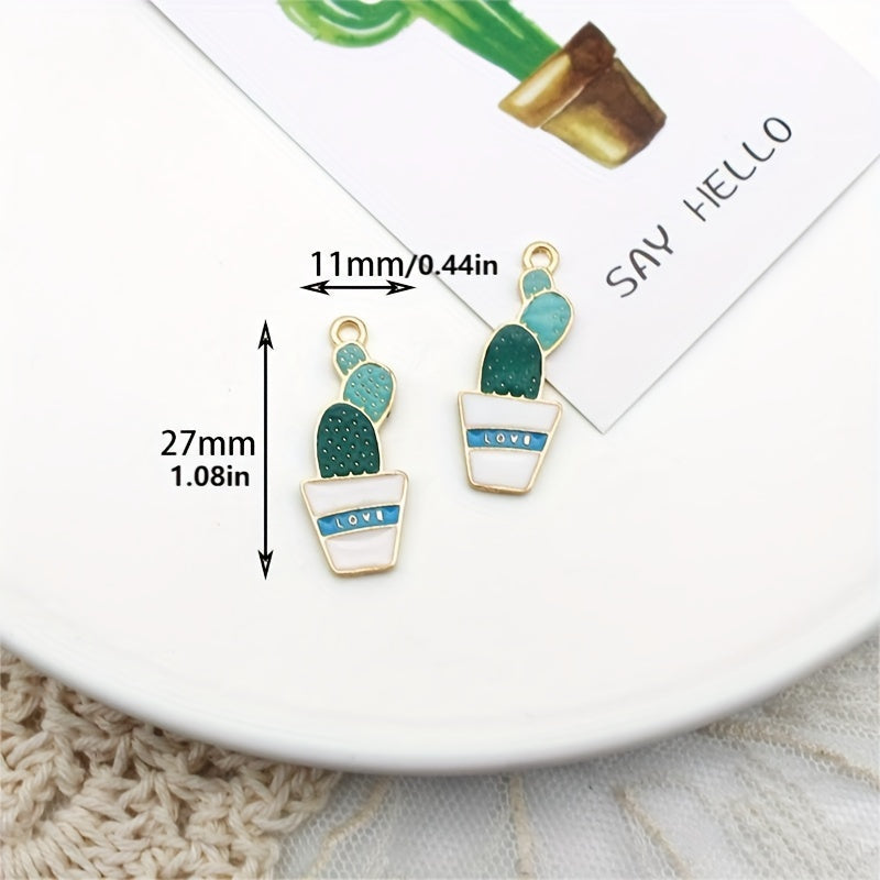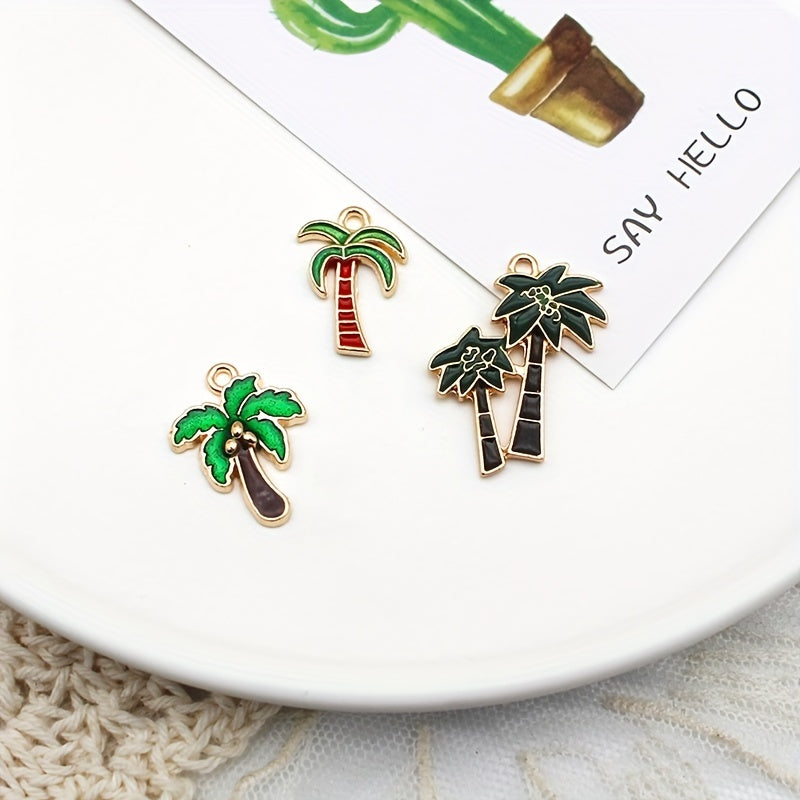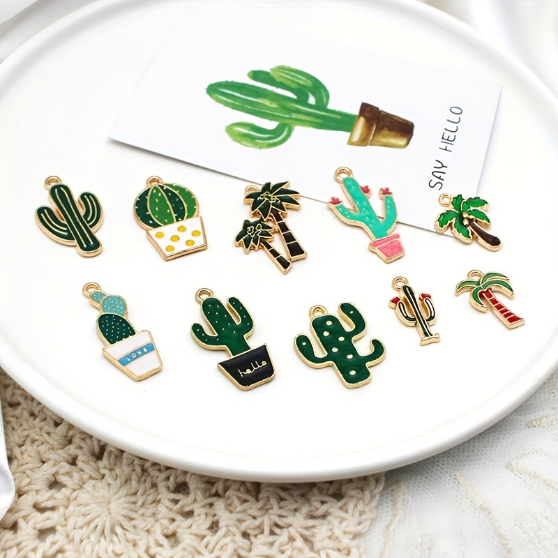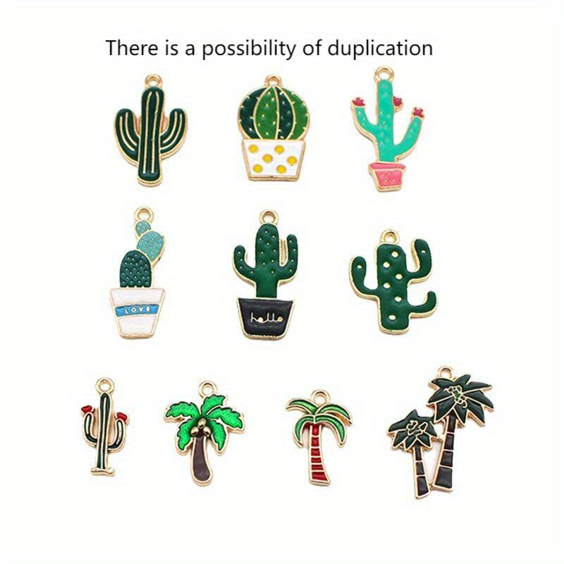 10pcs Enamel Cartoon Plant Cactus Coconut Tree Pendants DIY Jewelry Making