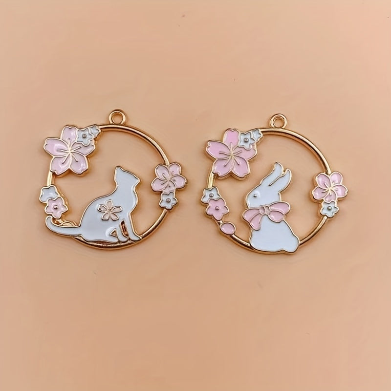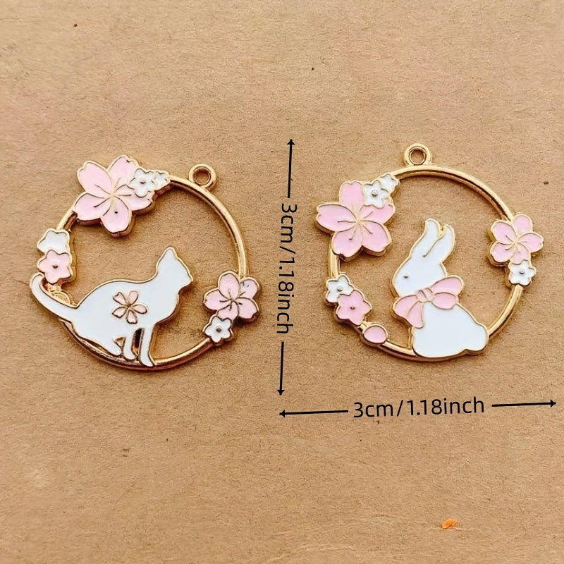 These adorable enamel cartoon rabbit and cat alloy pendants are perfect for DIY keychains, necklaces, and other jewelry projects.