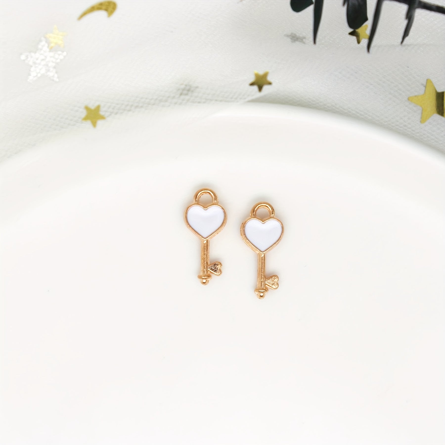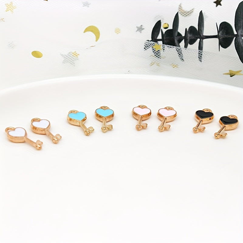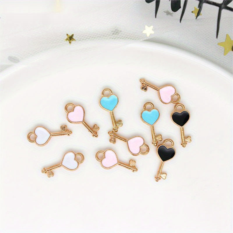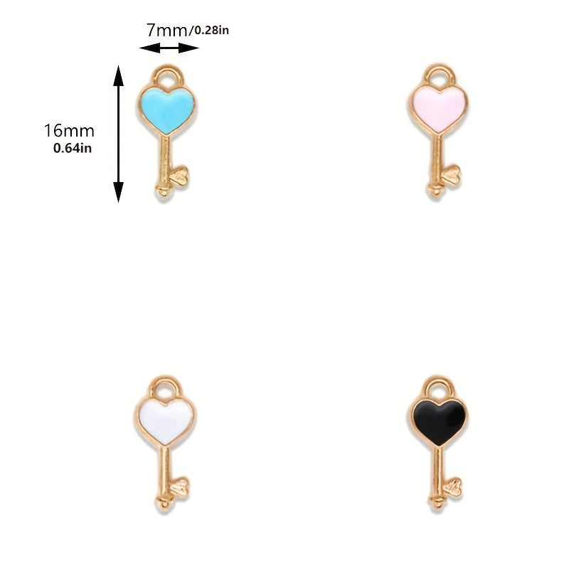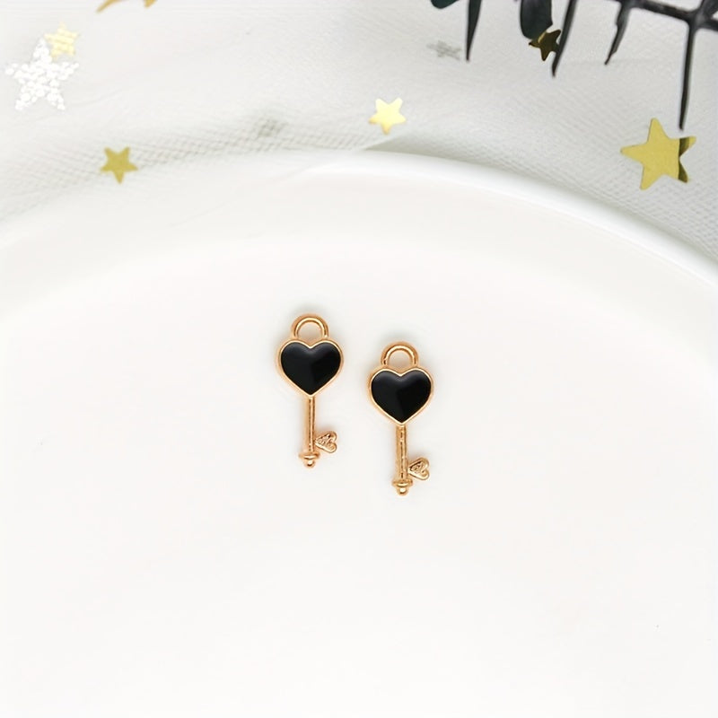 Add a touch of colorful charm to your DIY projects with these enamel heart key pendants. Perfect for earrings, bracelets, necklaces, and other accessories.