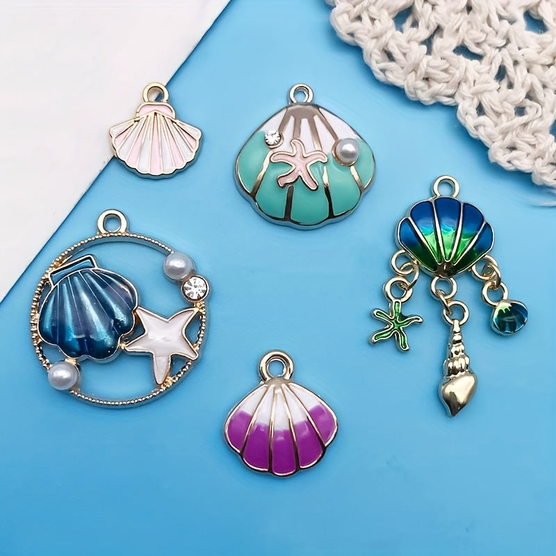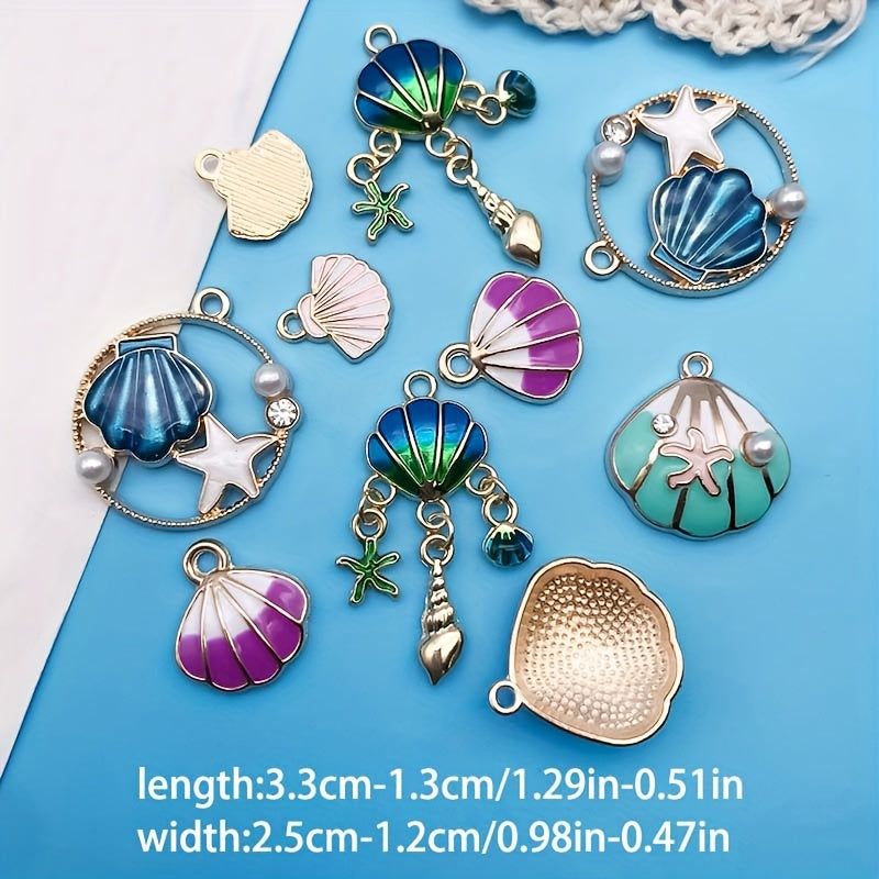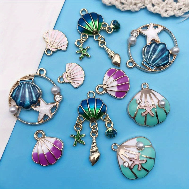 This pack contains 10 zinc alloy enamel marine life pendant charms, ideal for creating your own unique bracelets, necklaces, and jewelry pieces.
