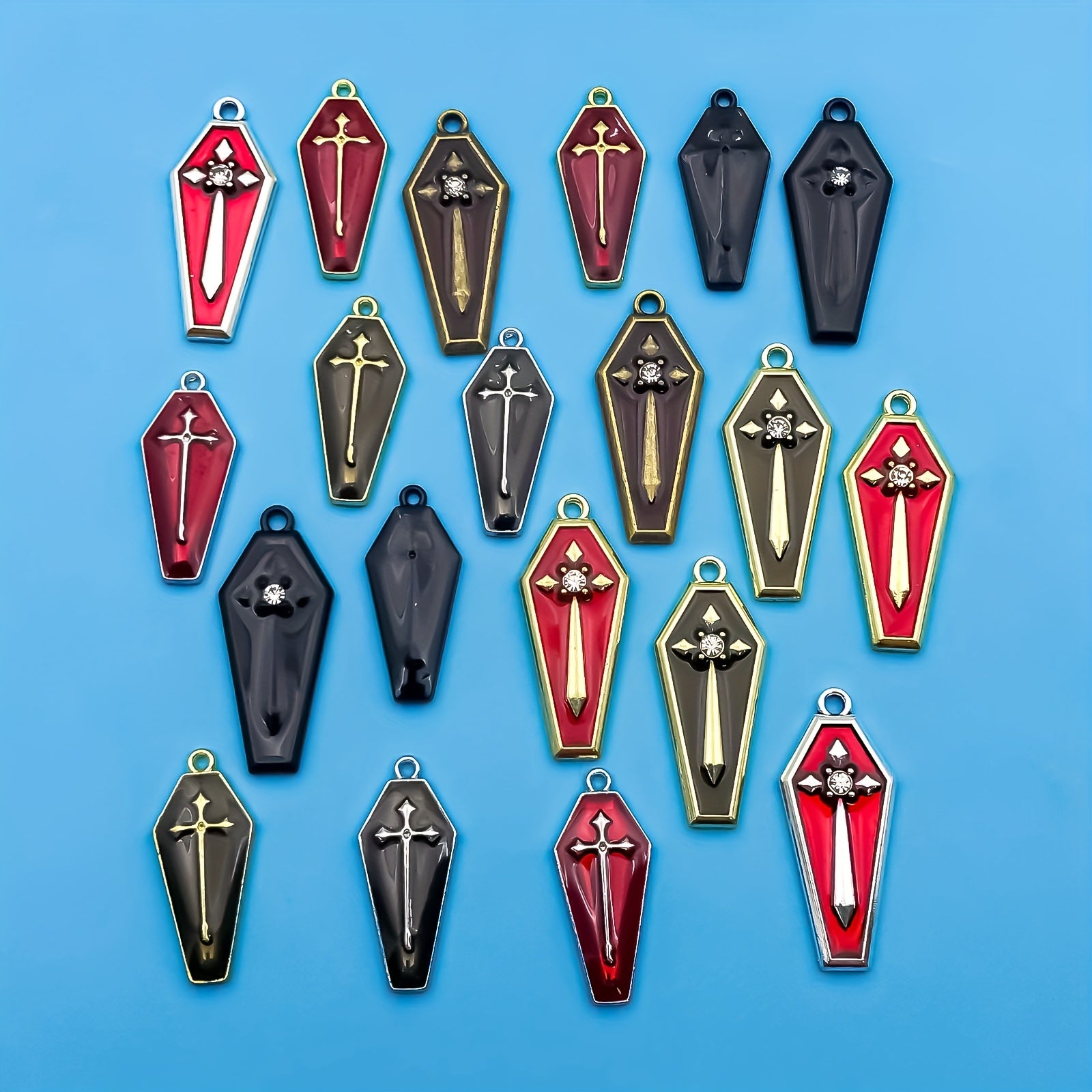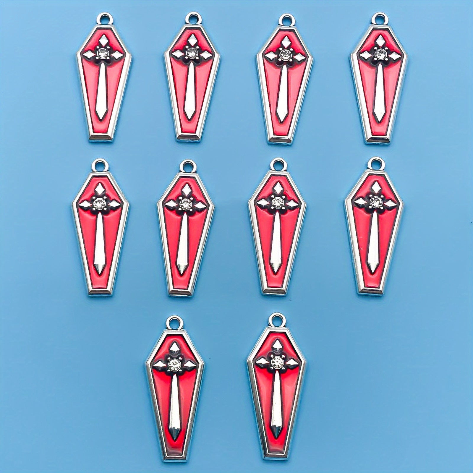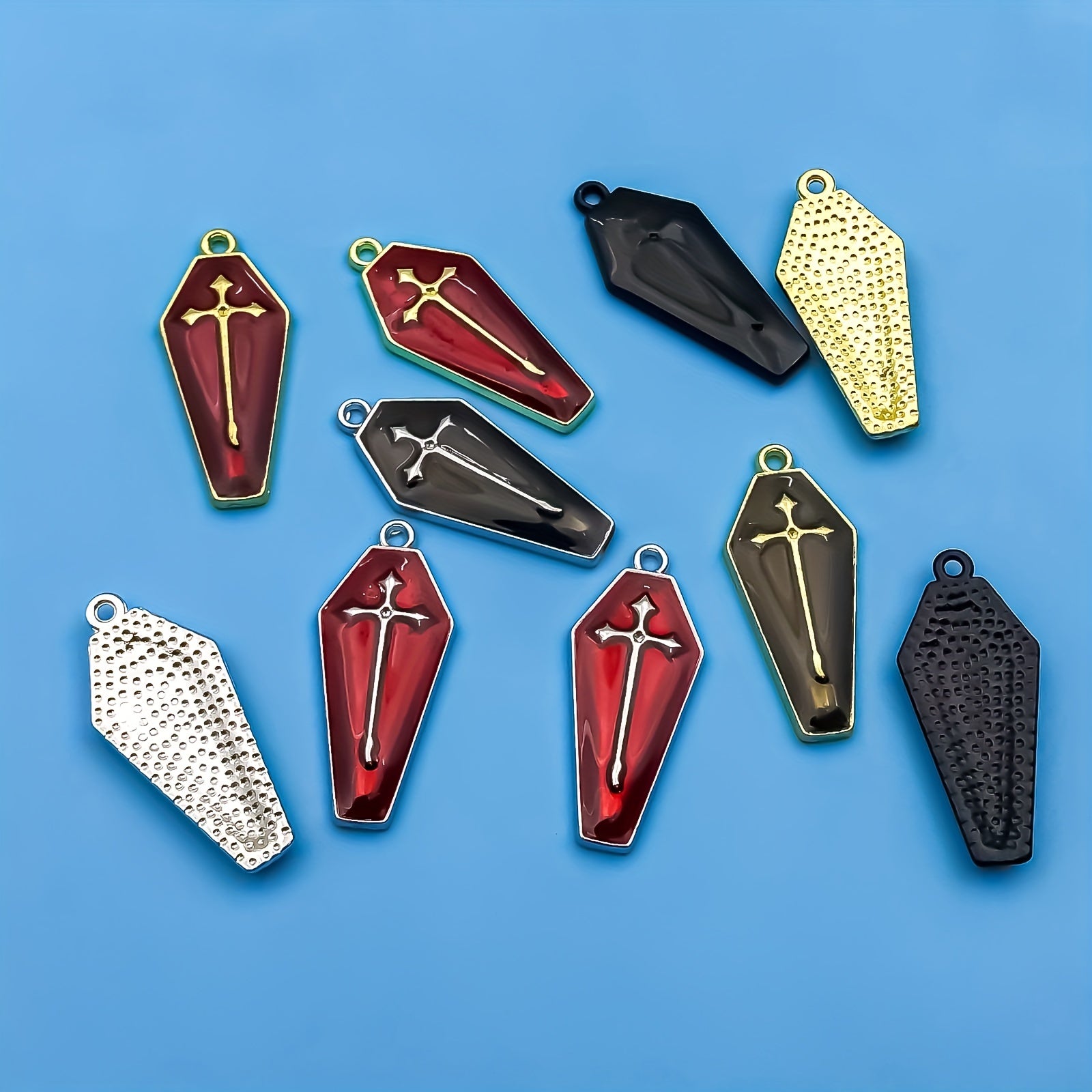 Get into the Halloween spirit with these enamel red cross pattern coffin earrings, perfect for creating your own gothic jewelry pieces. Ideal for crafting bracelets, necklaces, and pendants.