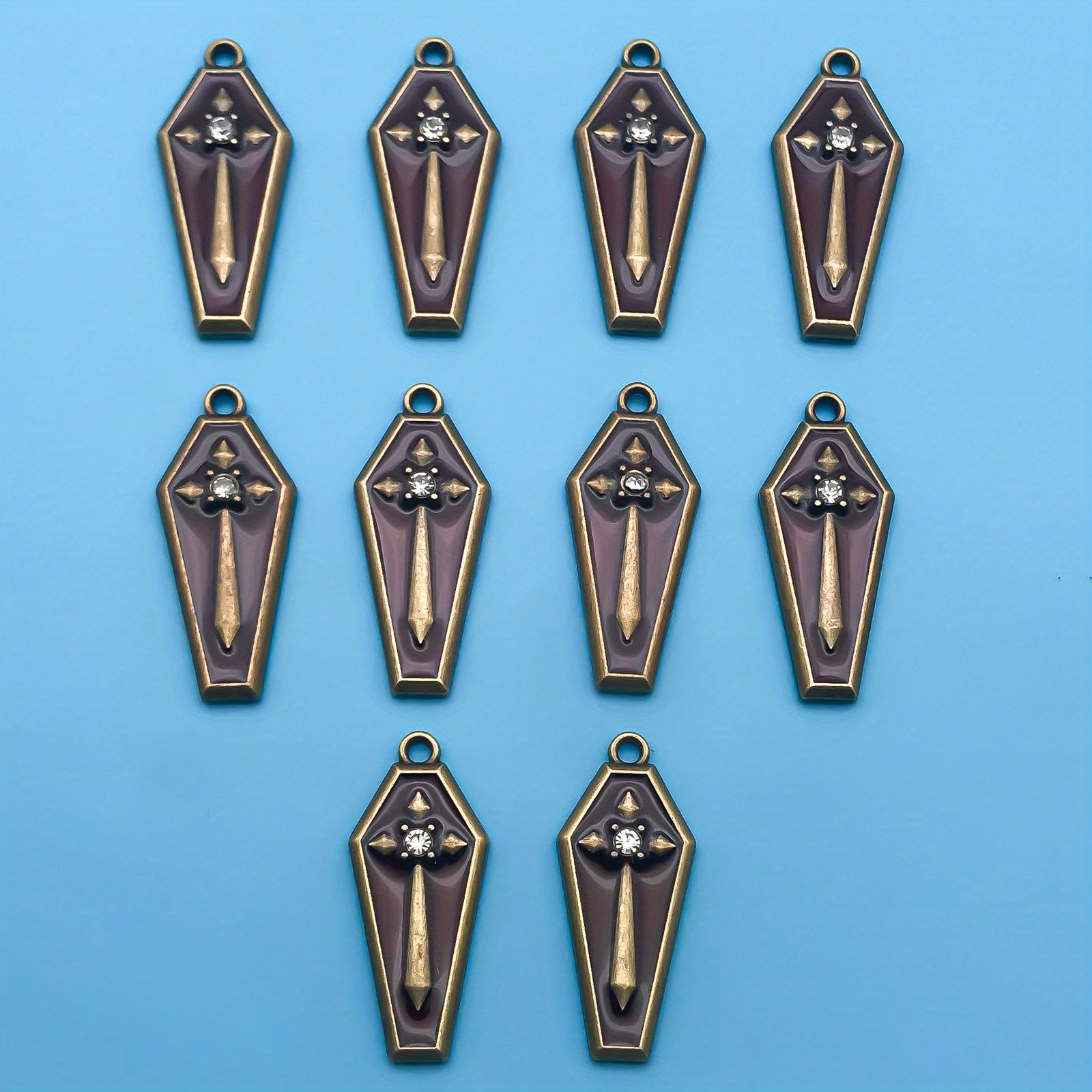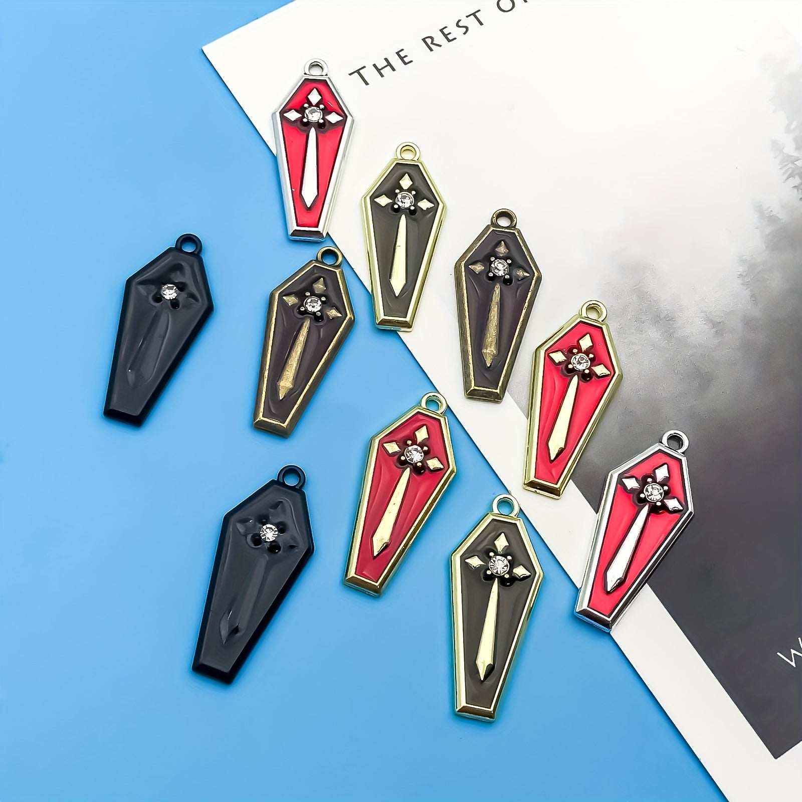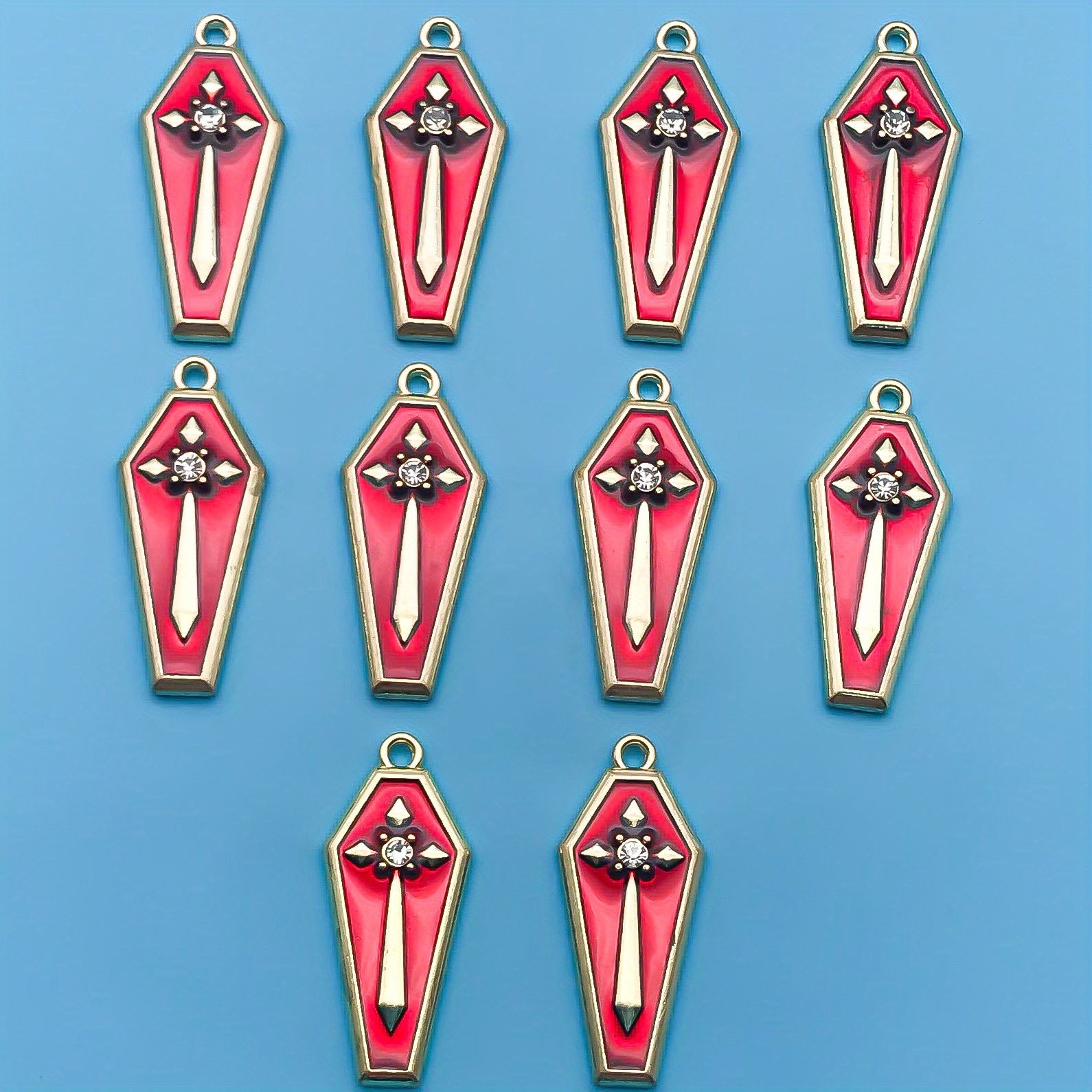 Get into the Halloween spirit with these enamel red cross pattern coffin earrings, perfect for creating your own gothic jewelry pieces. Ideal for crafting bracelets, necklaces, and pendants.