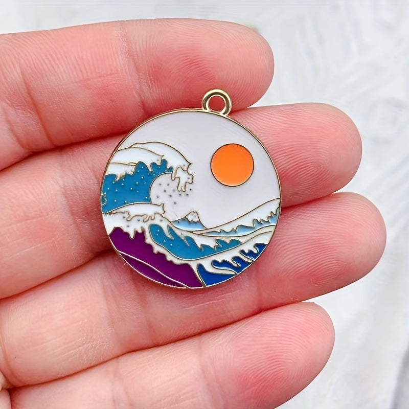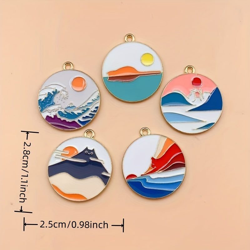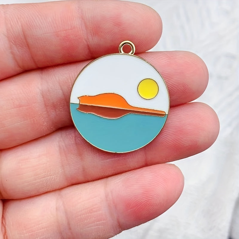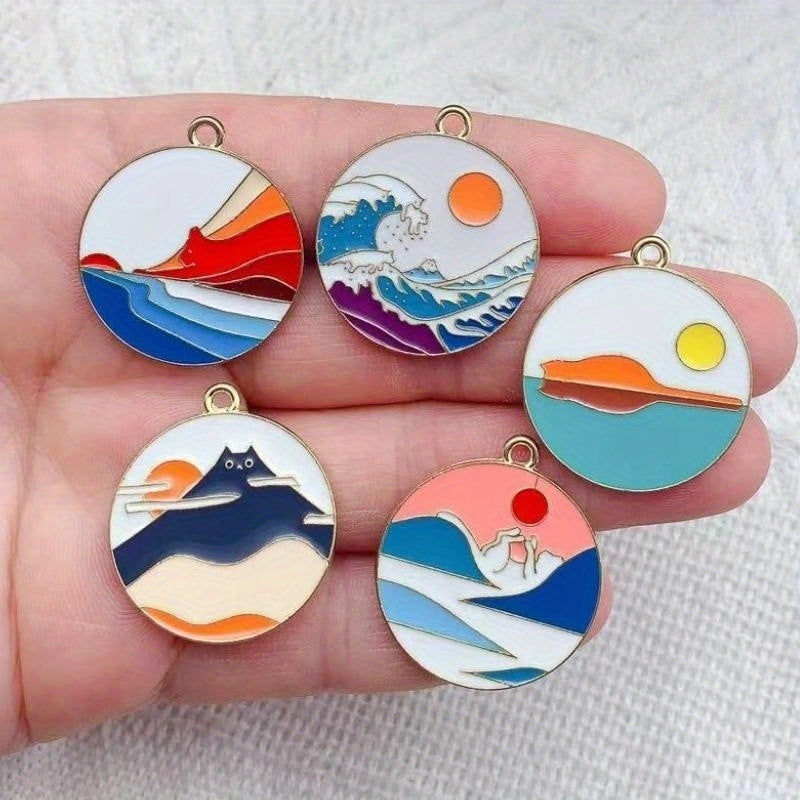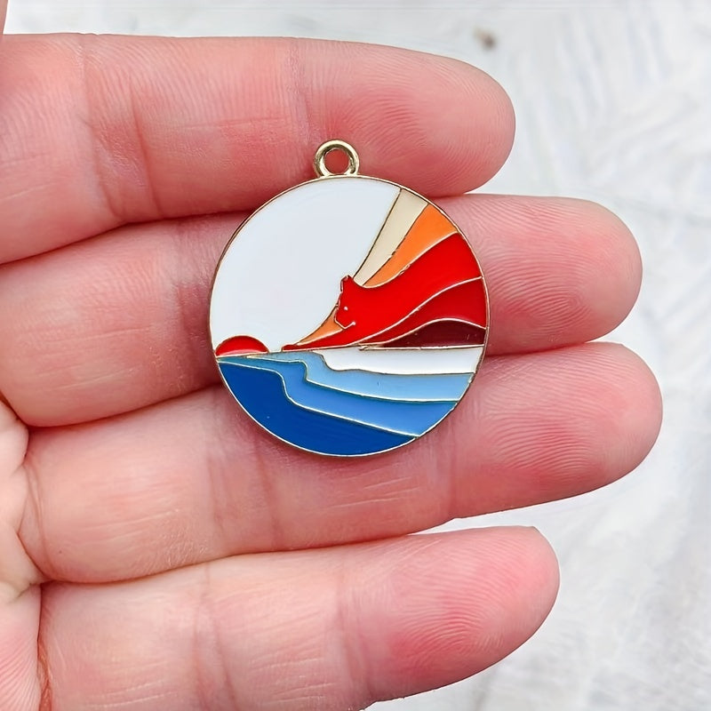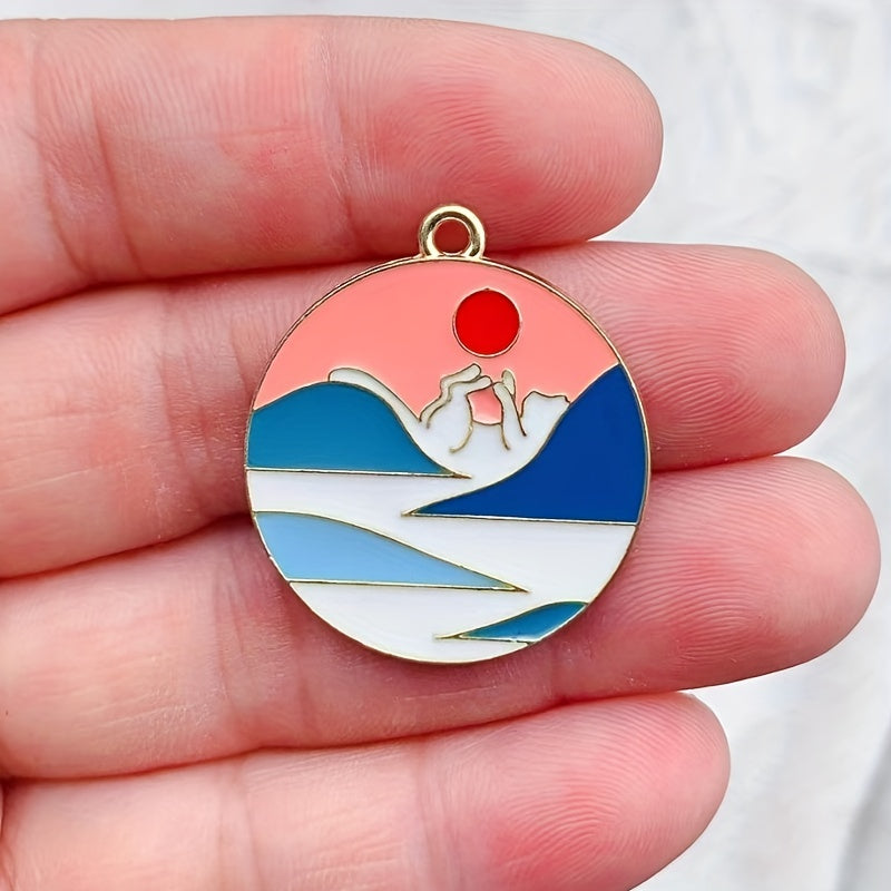 Add a pop of color to your crafts with these 10 colorful enamel scenery round alloy pendants. Perfect for necklaces, keychains, and phone decorations.