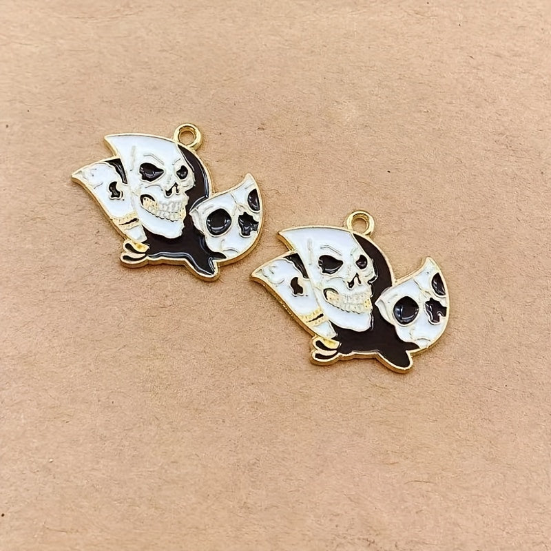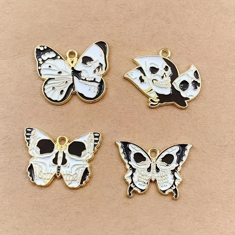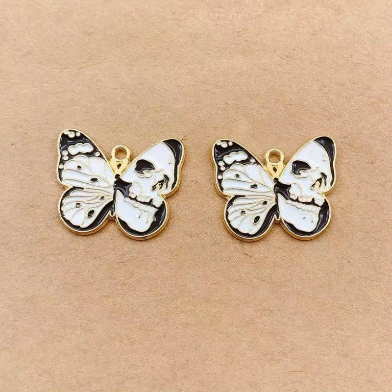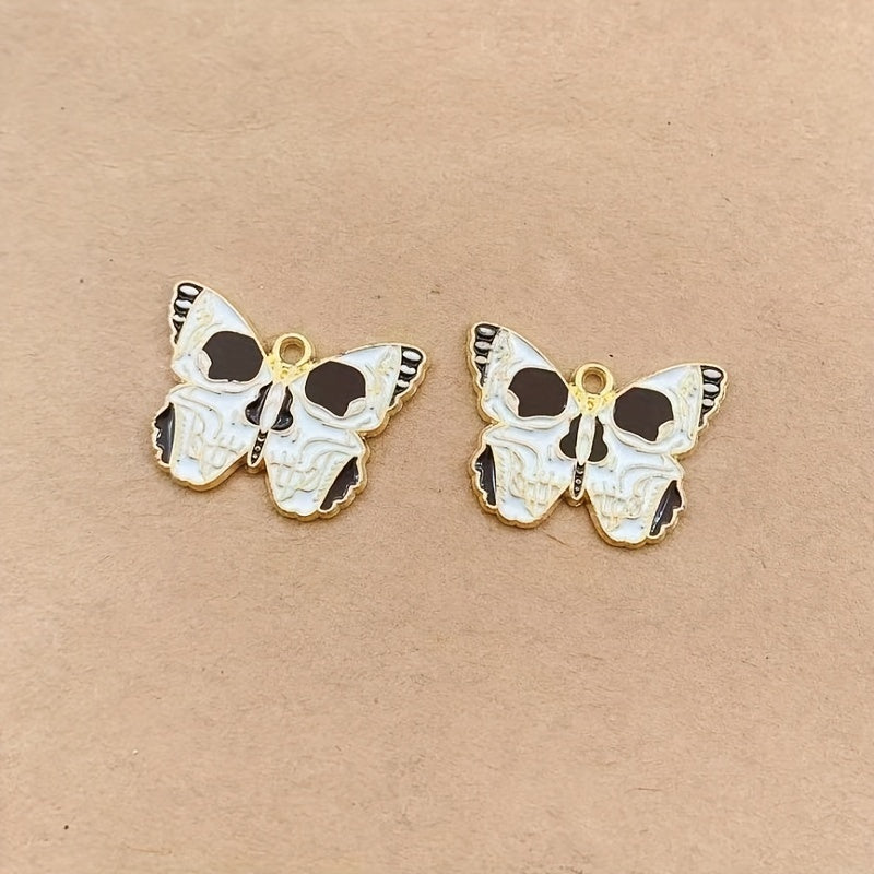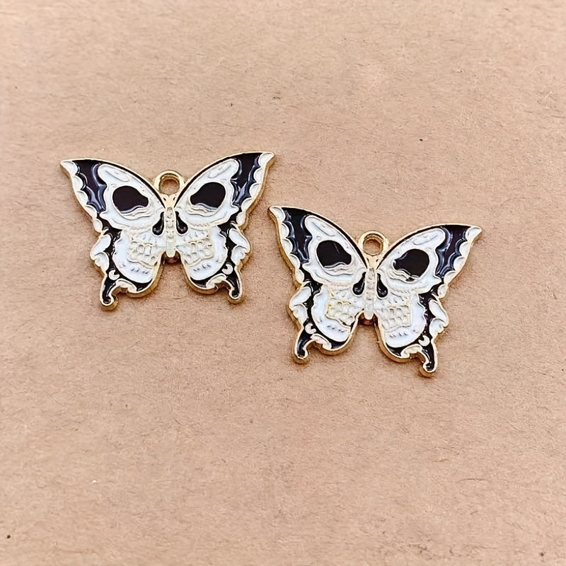 Add a touch of edgy style to your handmade jewelry with these 10 enamel skull pattern butterfly alloy pendants. Perfect for creating earrings, bracelets, necklaces, and more.