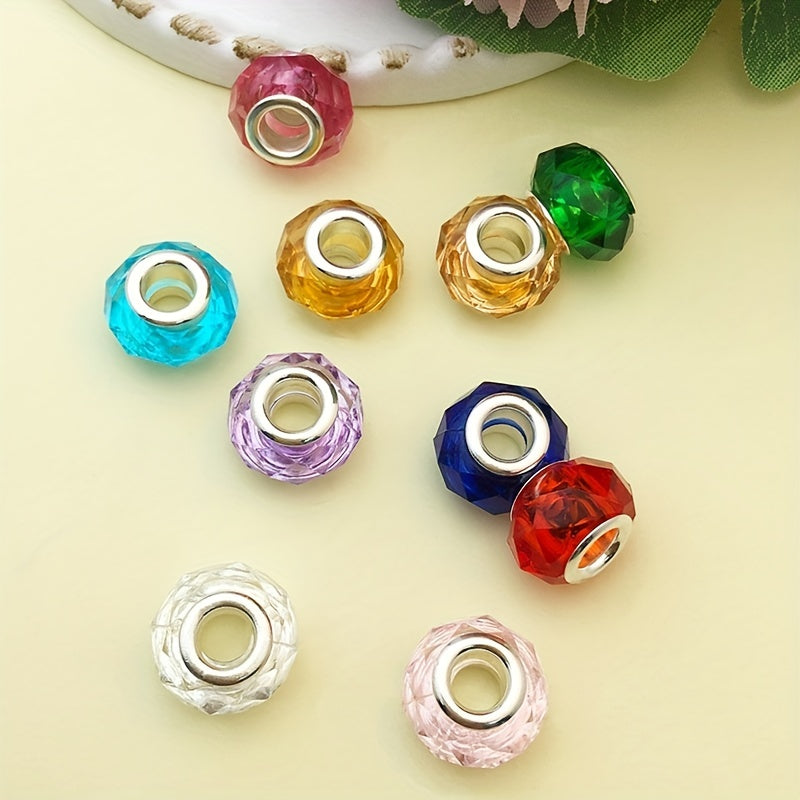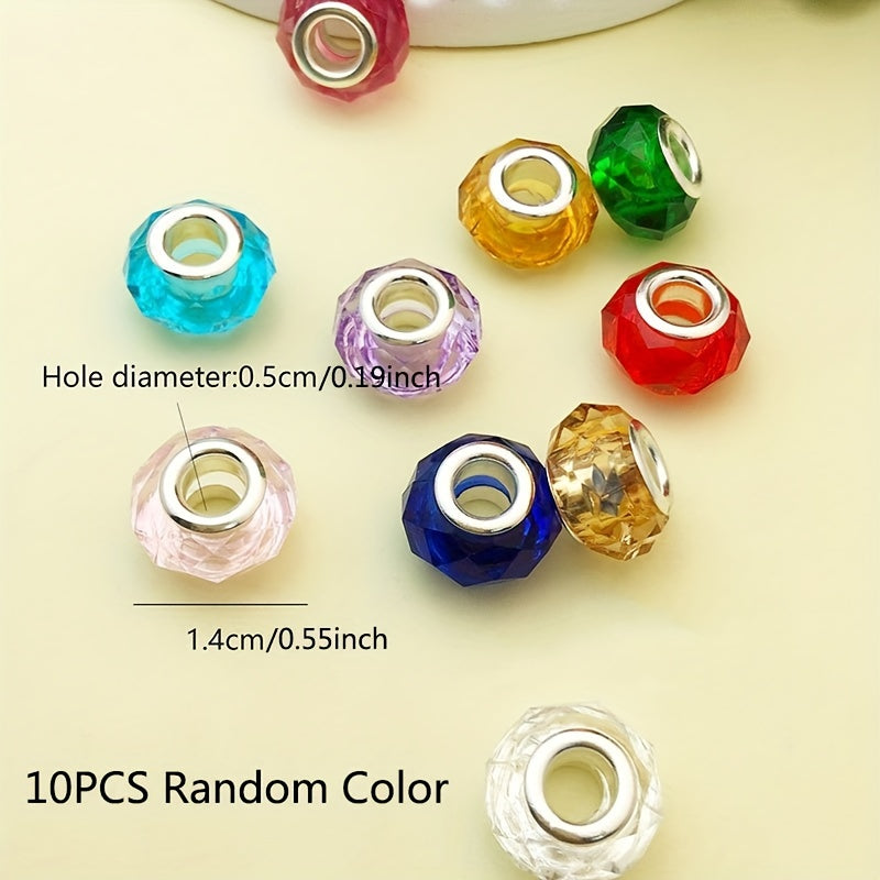 Get a random assortment of 10 European large hole beads made of resin for DIY charms bracelet and jewelry making.
