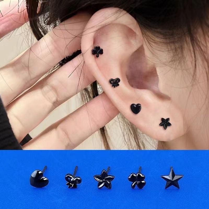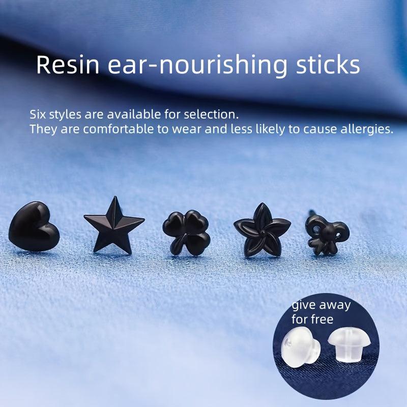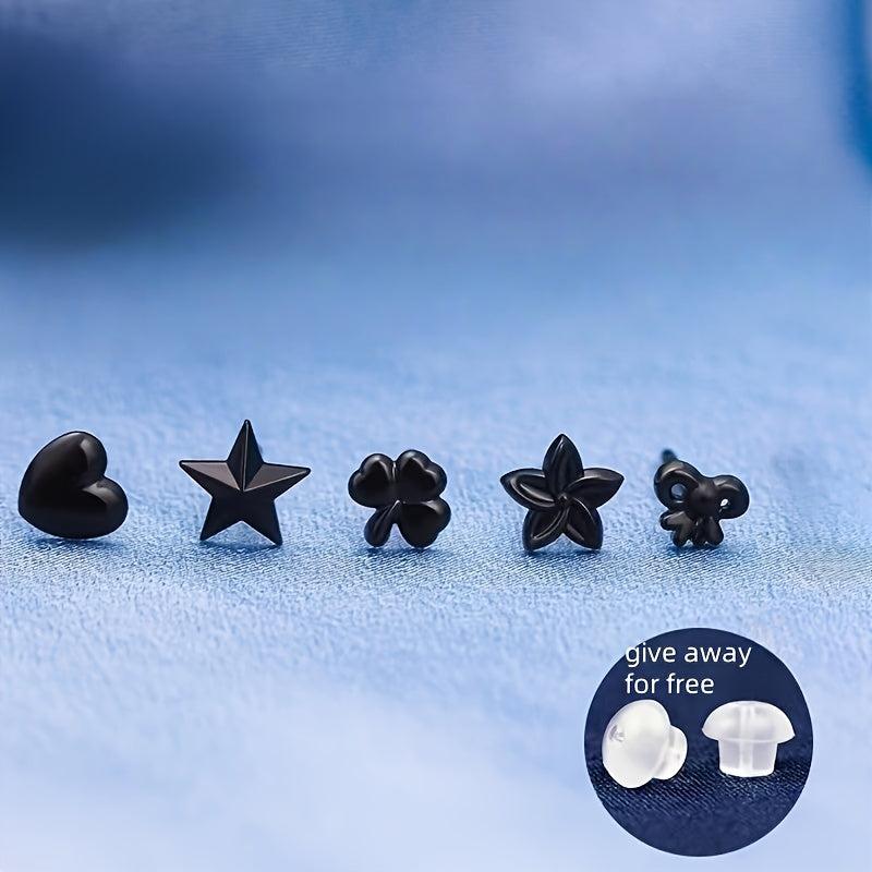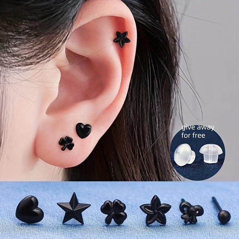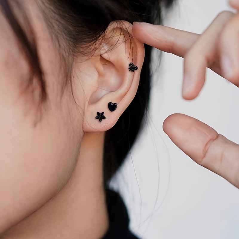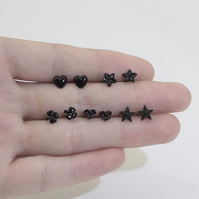 This set includes 10 pairs of earrings with different geometric patterns. They are anti-allergic and suitable for both men and women. The heart and bow designs add a stylish touch to any outfit.