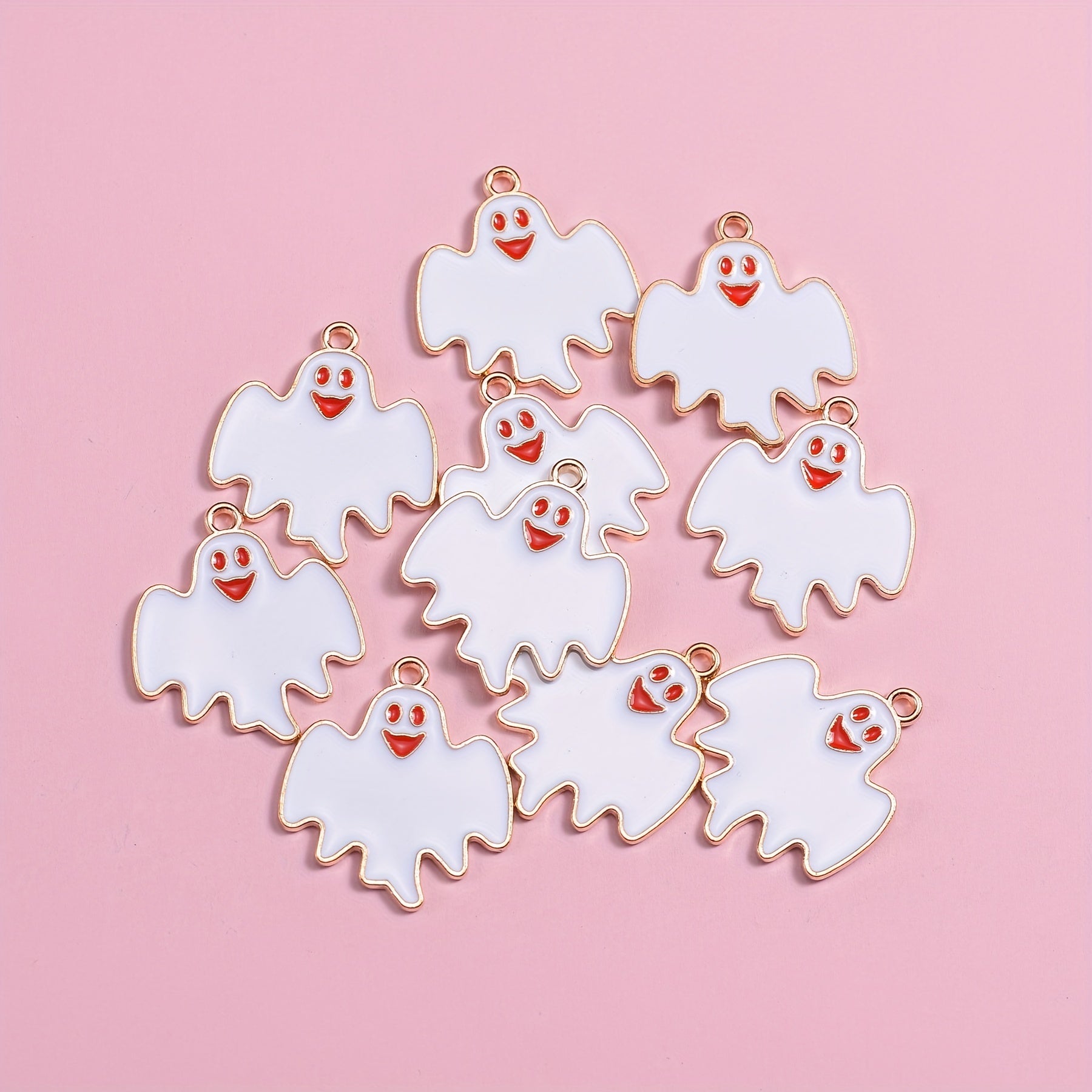 Create spooky and stylish jewelry with this set of 10 ghost and bat alloy pendants. Perfect for Halloween-themed crafts and decorations.