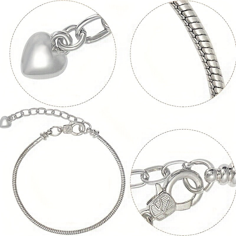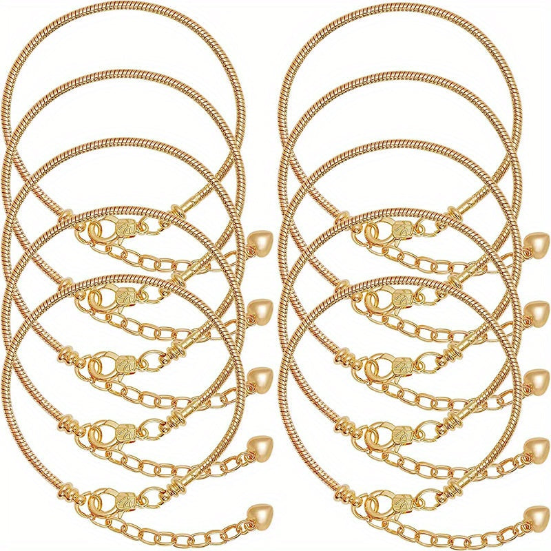 This set includes 10 snake bone chain bracelets in golden or silvery colors. Each bracelet features a heart-shaped lobster clasp, perfect for creating your own unique DIY bracelet designs.
