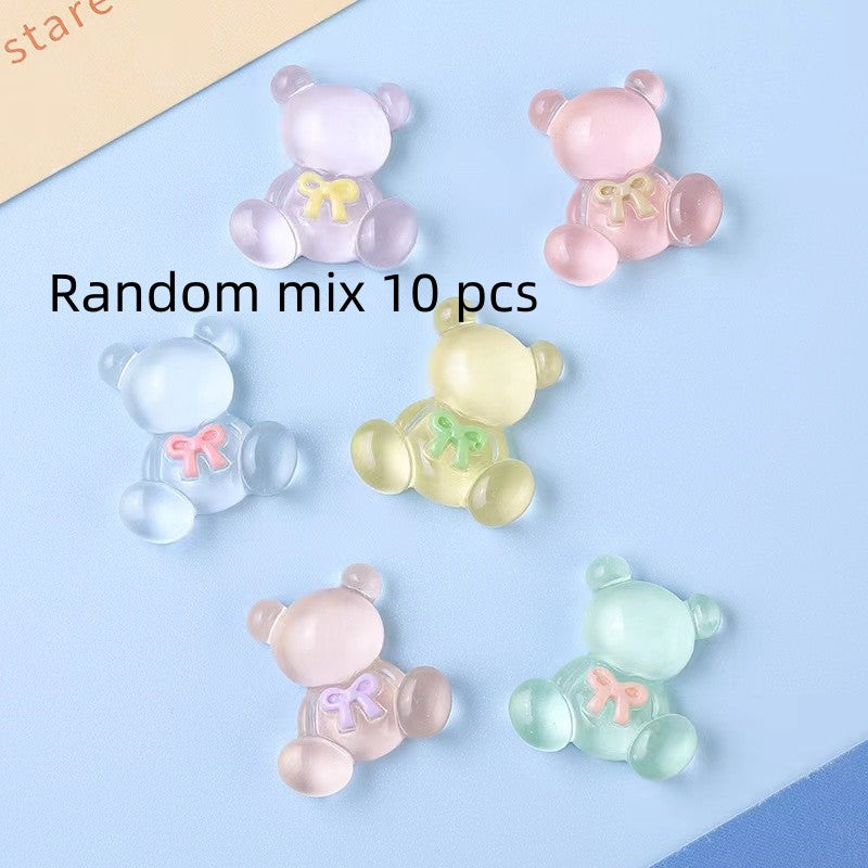 Get this 10-piece set of jelly transparent bear beads for various DIY projects. Perfect for creating cartoon hair accessories, mobile phone cases, key chains, cups decorations, shoes embellishments, and refrigerator magnets.