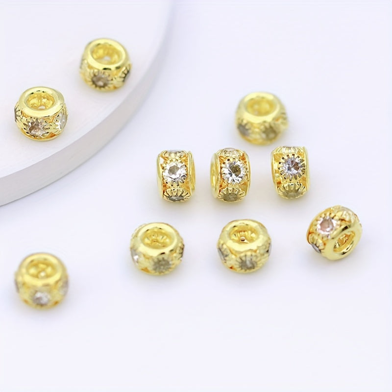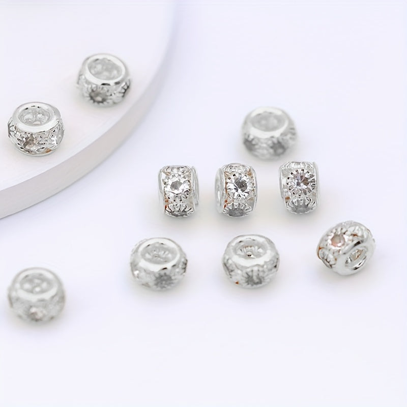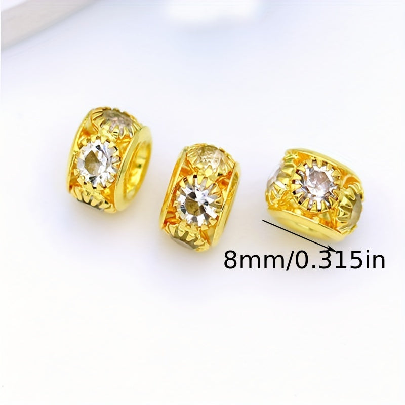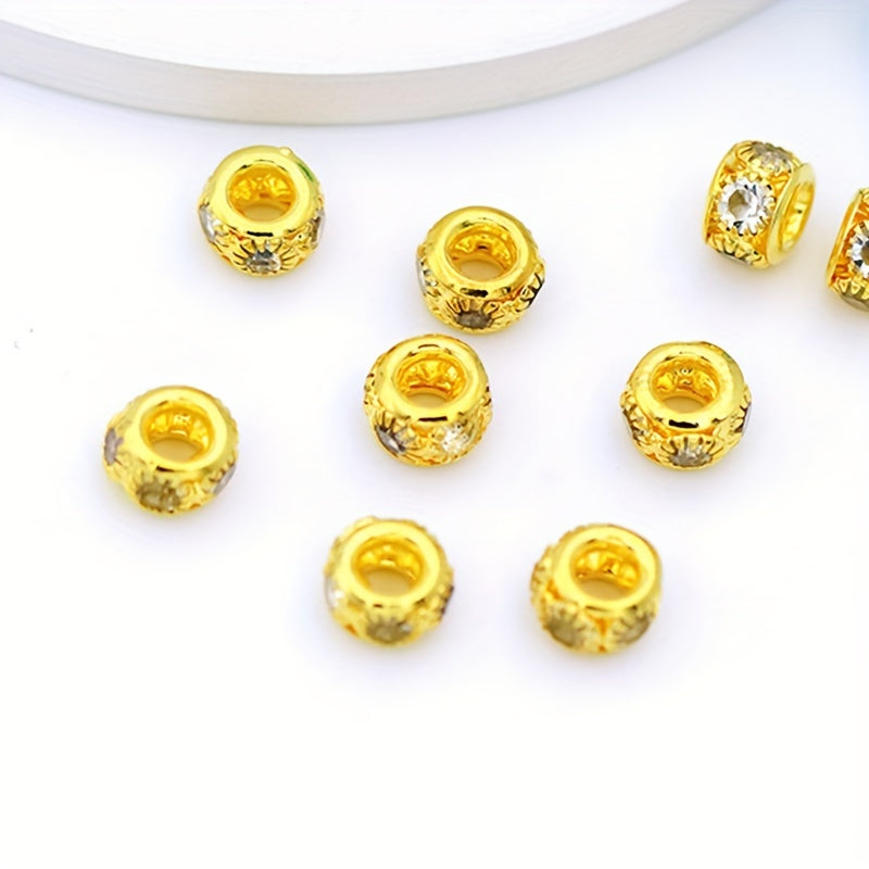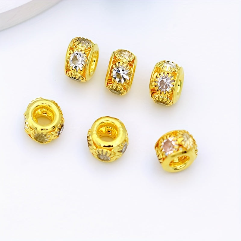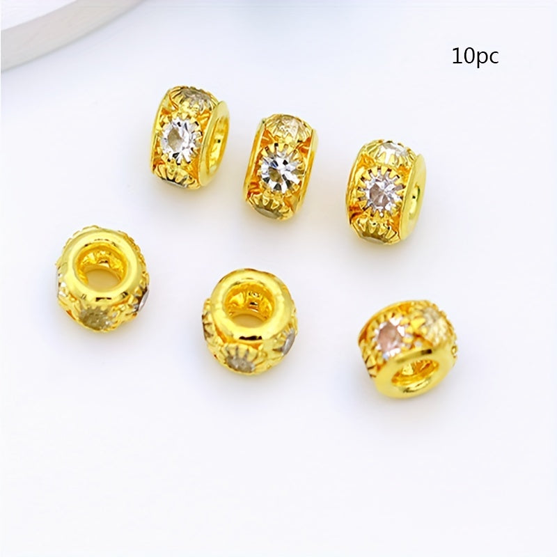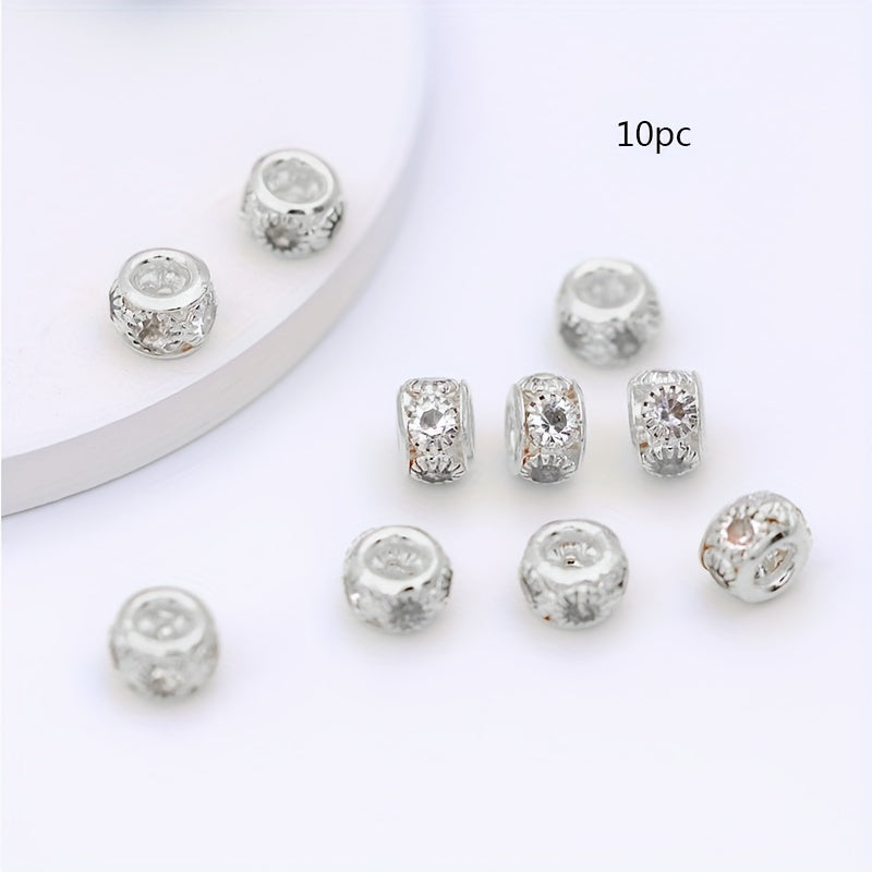 Add some sparkle to your DIY jewelry projects with these 10pcs rhinestone decorated large hole brass beads. Available in golden or silvery finish, these beads are perfect for creating unique and stylish accessories.