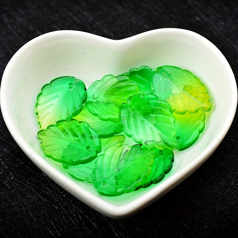 Add a touch of nature to your creations with these colorful leaf pattern glass beads. Perfect for crafting earrings, bracelets, necklaces, and more.