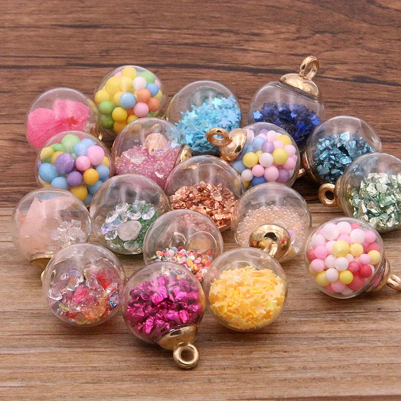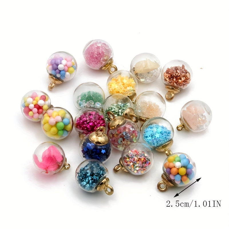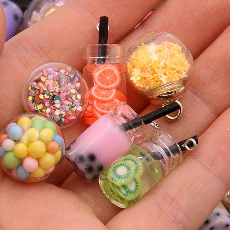 This set includes 10pcs of glass bottles and tea cup charms designed for making keychains, bracelets, necklaces, and other jewelry items. Perfect for DIY projects.