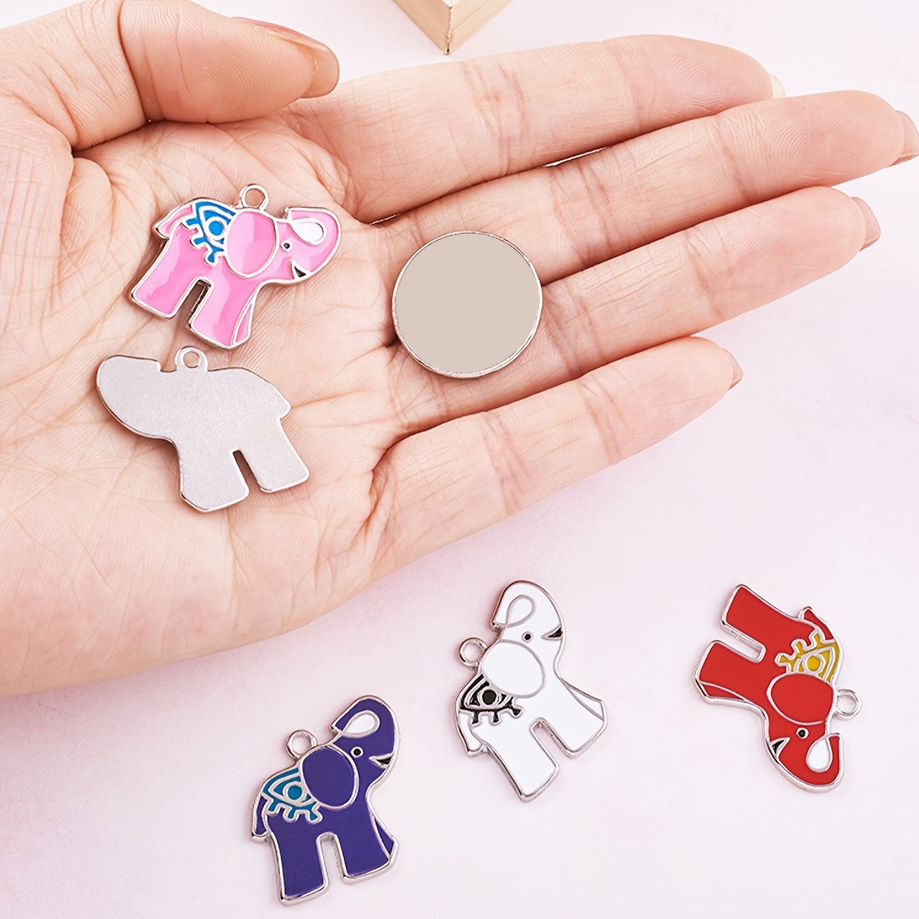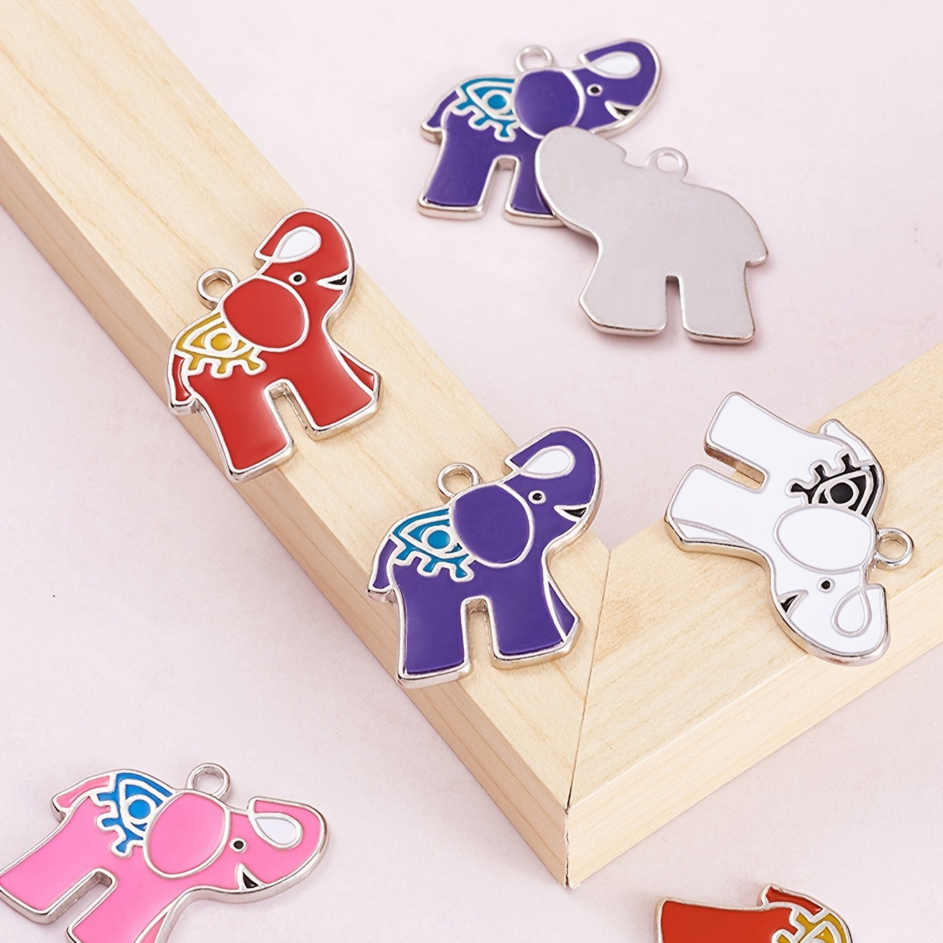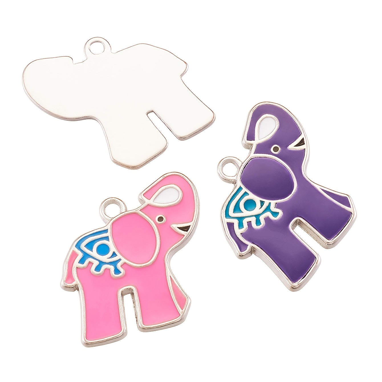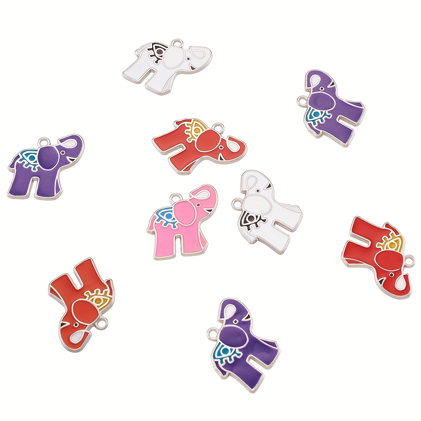 Add a touch of whimsy to your DIY jewelry projects with these 10 random mixed alloy enamel elephant pendants. Perfect for necklaces, bracelets, or earrings.