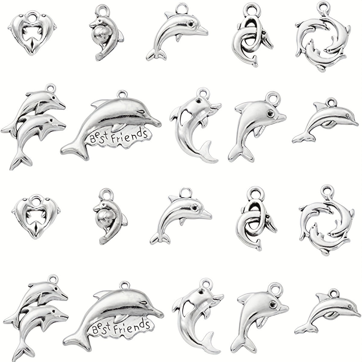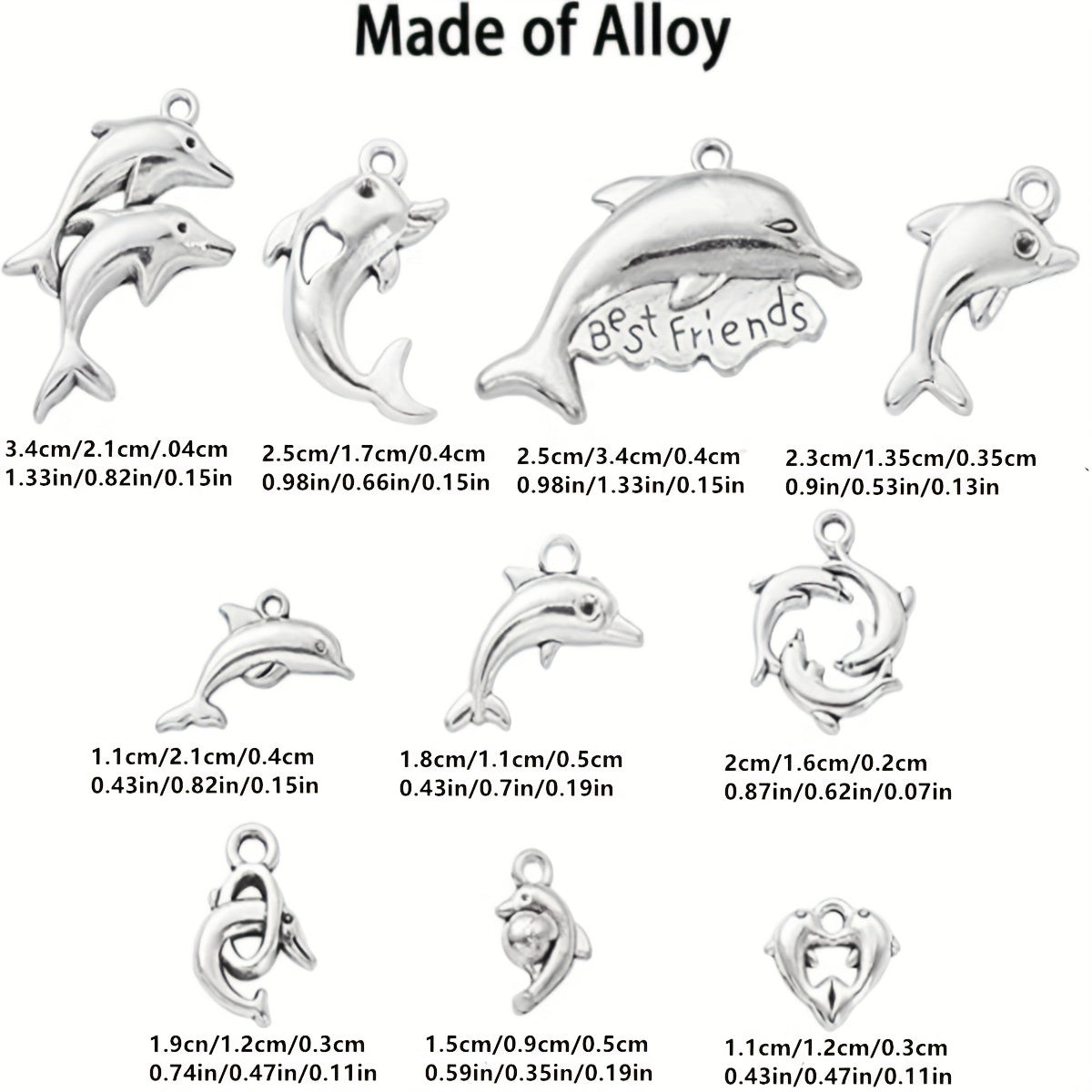 Get creative with this set of 10 mixed style marine dolphin series alloy pendants perfect for DIY necklace, bracelet, and earring crafts.